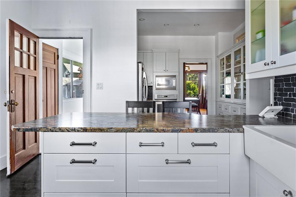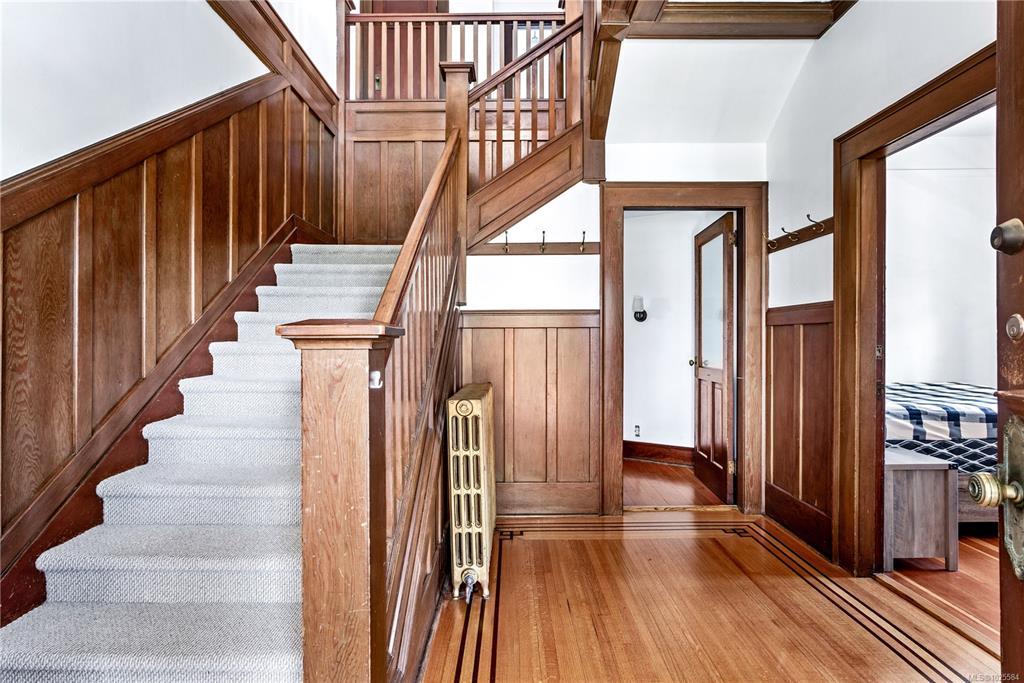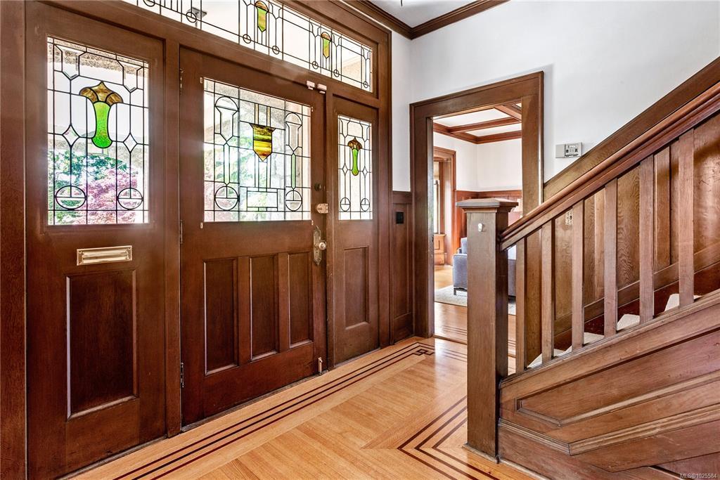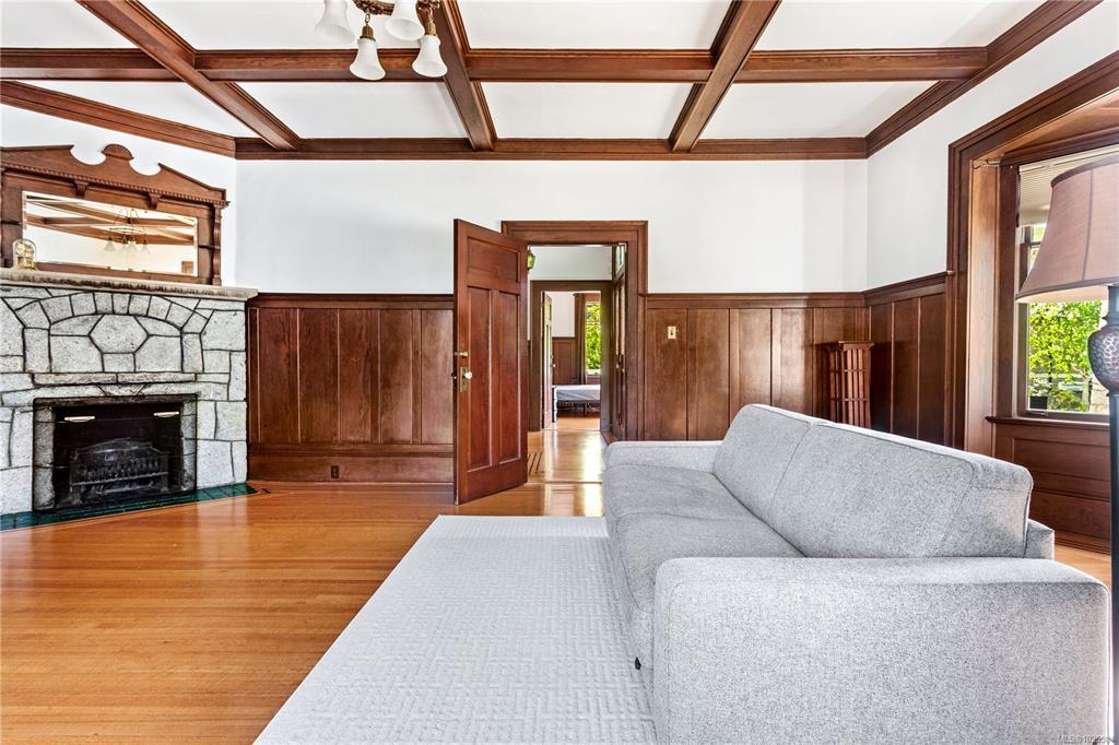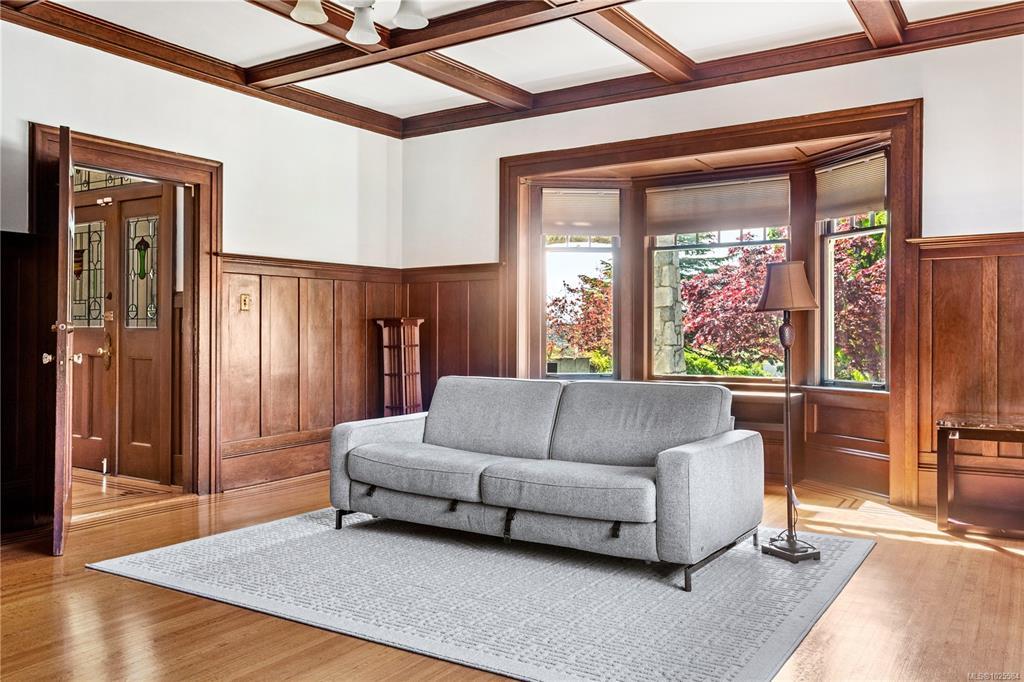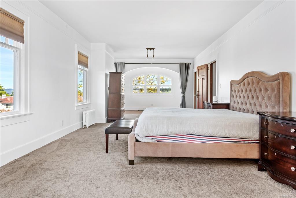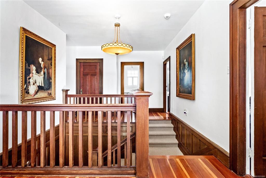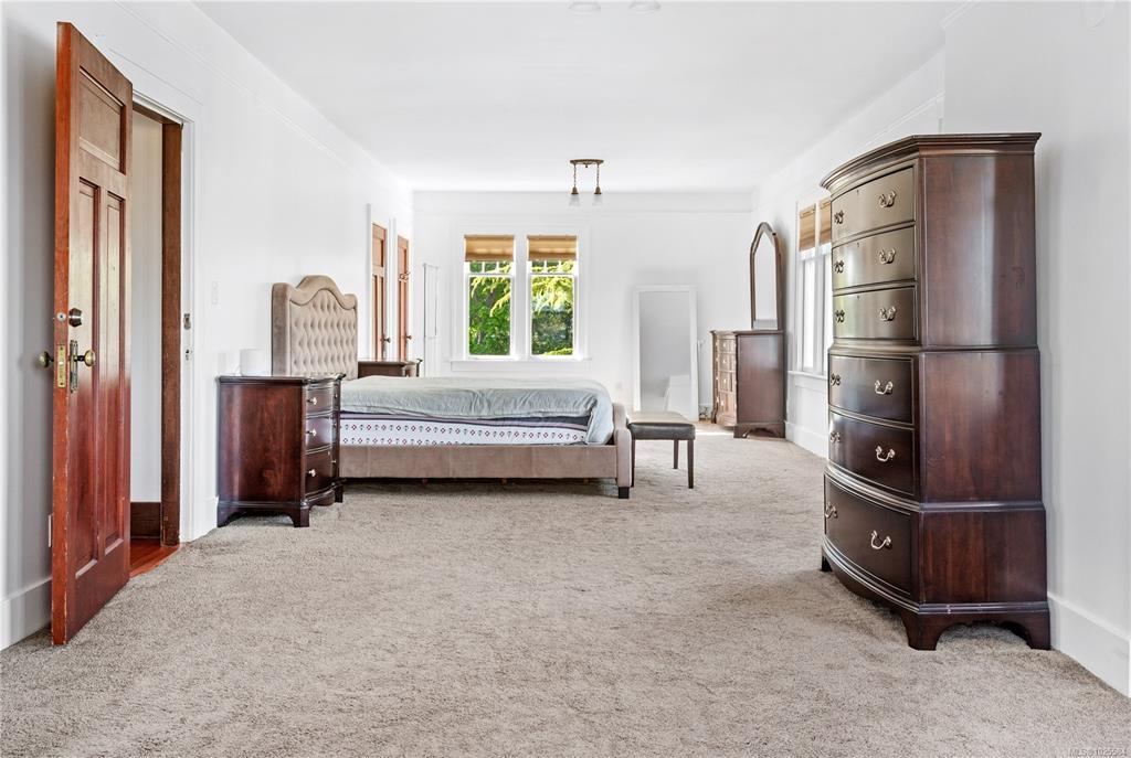 Welcome to one of Gordon Head’s most iconic estates. Built in 1922 for Geoff & Maud Vantreight, this distinguished heritage home rests on nearly half an acre atop one of the area’s highest points. Surrounded by mature landscaping and dual access, it has been tastefully restored, blending classic charm with modern updates. Inside are 7 beds , 5 baths , and over 5,000 sq. ft. across three levels. The main floor features a bright living room, spacious dining area, and kitchen. French doors open to a wrap-around south-facing veranda and patio, perfect for indoor-outdoor living. The expansive primary suite upstairs includes ocean views, a sitting area, walk-in closet, and a 5-piece ensuite with the original clawfoot tub. Three more bedrooms, two full bathrooms, and a sleeping porch complete this level. The lower level offers two flex rooms, ample storage, and a self-contained 1-bedroom suite. A rare opportunity to own a piece of Saanich history.