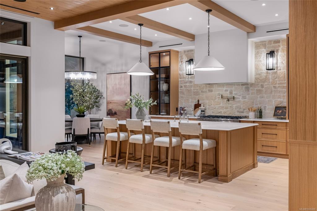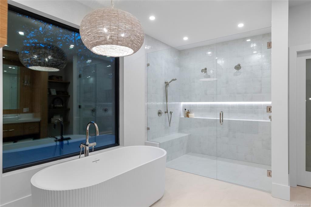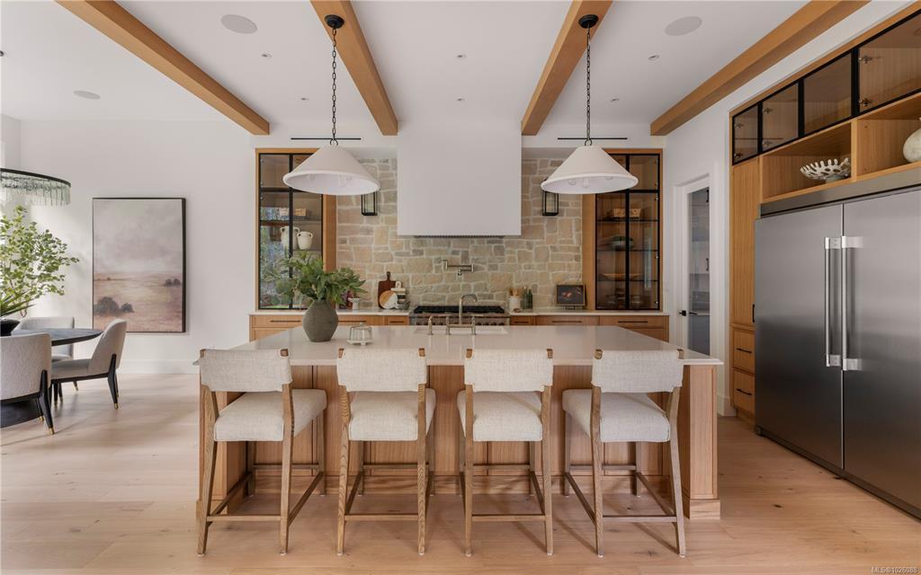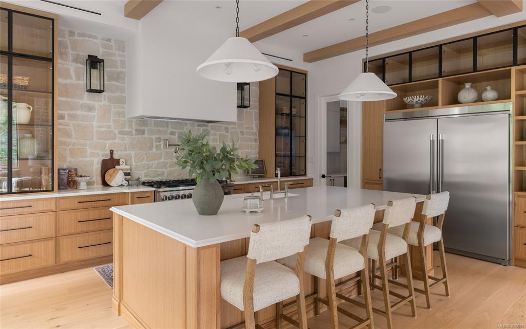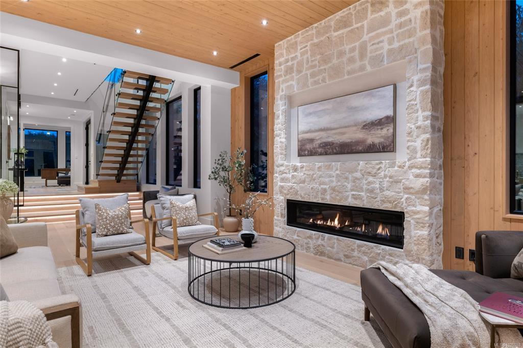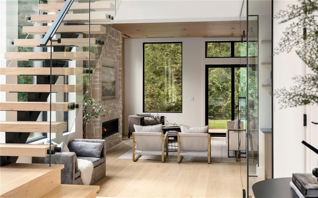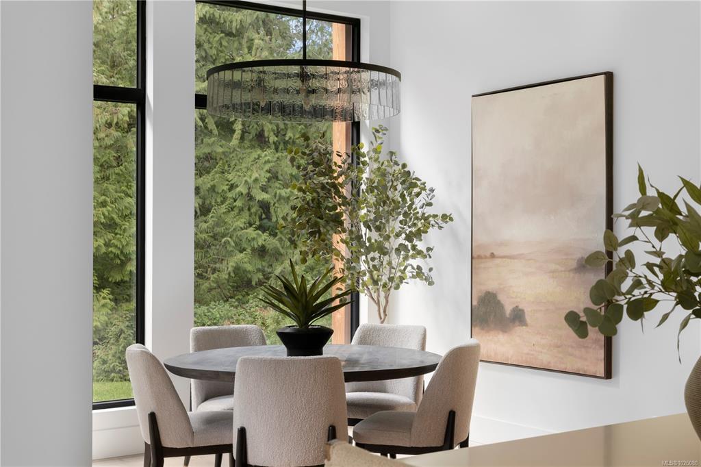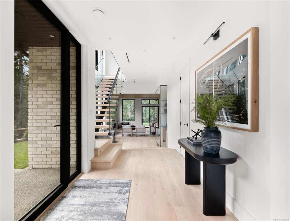 This exceptional West Coast Contemporary, Step Code 4–certified home blends performance with craftsmanship. Built by high-end boutique builder Qualis Builders, this home is situated on one of the most desirable lots in the Olympic View Golf Course, offering an abundance of natural light. Featuring premium windows with German hardware, an extensive brick exterior, & striking fir and wood ceiling details throughout. The interior showcases a dramatic floating staircase, rift white oak cabinetry, stone finishes, a dedicated office, & a thoughtfully designed layout with three spacious bedrooms, each with its own private ensuite. The gourmet kitchen is anchored by a 48” Fisher & Paykel range, ideal for entertaining. The spa-inspired primary ensuite features a his-and-her shower and custom wrapped cabinetry, while an incredible wine room and two gas fireplaces add a luxurious touch. Backing onto a serene greenbelt, this home delivers privacy, efficiency, & luxurious quality in every detail.