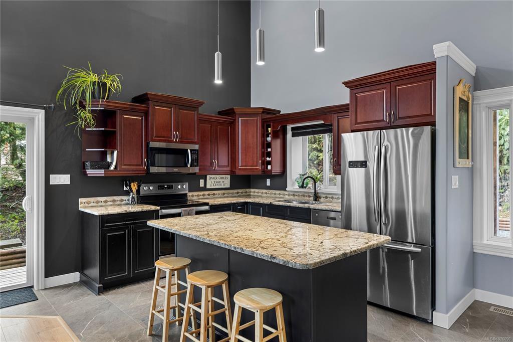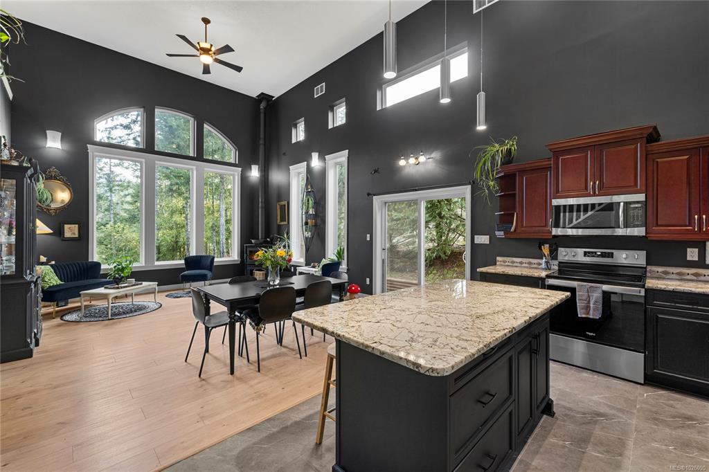 Forest Views from this stunning home with a suite. Tucked into a peaceful, tree-lined .42-acre setting, this home offers a rare mix of privacy, space, and wide-open outlooks across the valley. Step inside and you’ll feel it right away with lofty vaulted ceilings, natural light, and a layout that just works. The kitchen is both beautiful and functional with stone counters, quality cabinetry, and stainless appliances, flowing into the main living and dining areas for easy hosting and everyday comfort. Two bedrooms, an updated bath, and a private family room create great separation for daily life. Upstairs, the generous primary retreat features a walk-in closet, private balcony, and a spa-like ensuite with heated tile floors, rain shower, and soaker tub. A self-contained 1 bedroom suite adds flexibility for extended family, guests, or income. Enjoy walking trails, river swims, and a 15-minute drive to downtown Qualicum Beach.