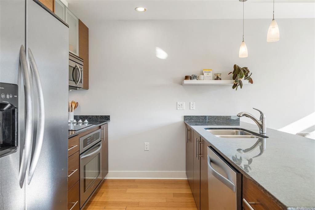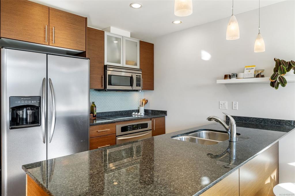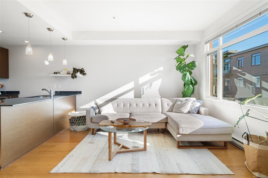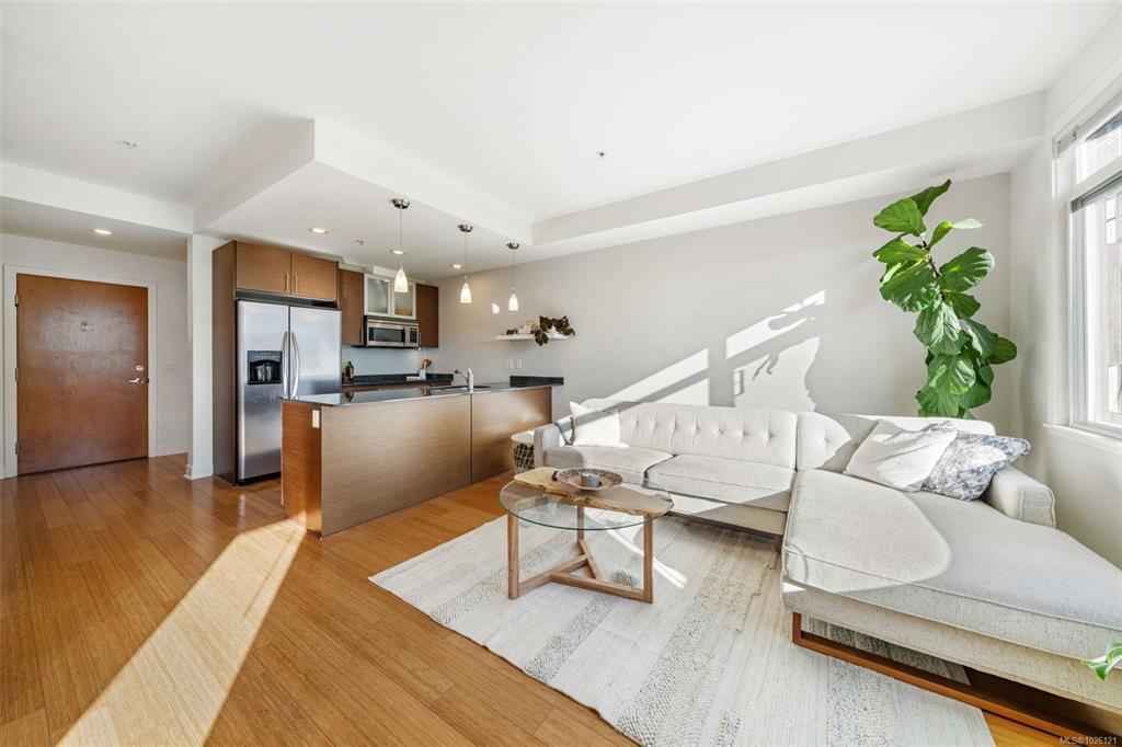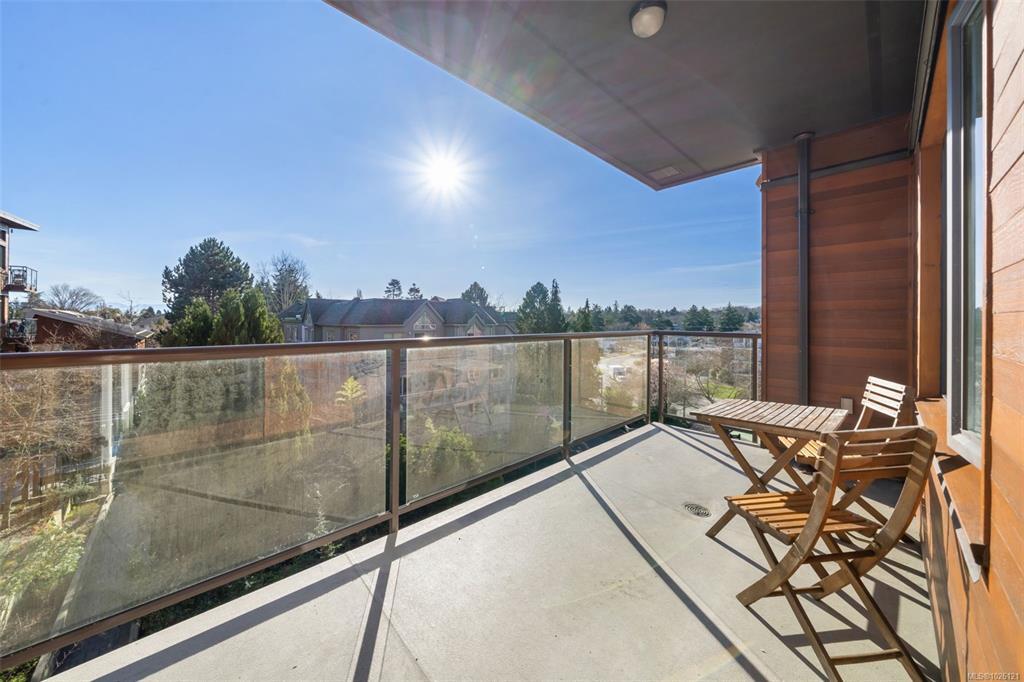 Welcome to #303 at Richmond Gate, a bright, south facing 1 Bed + Den, 2 Bath condo in an unbeatable location. The exposure matters here. Afternoon and evening sun pours into the open-concept living space and onto the 117 sqft balcony, perfect for unwinding after work, studying in natural light, or hosting sunset drinks. Inside, you’ll find wood flooring, new bedroom carpet, granite countertops, stainless appliances, high ceilings and a cozy fireplace that makes the space feel warm. The functional layout includes a true den, perfect for working from home, a walk-in closet and a spacious ensuite complete with soaker tub. Step outside and your lifestyle gets even better. Walk to UVic and Camosun, Mount Tolmie, groceries, coffee shops, transit and everyday essentials are right at your doorstep. Whether you’re a student, professional or investor, this location keeps life simple, less driving, more living. Secure parking, a large storage locker and bike storage complete the package.