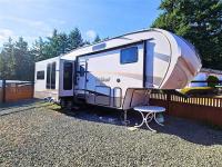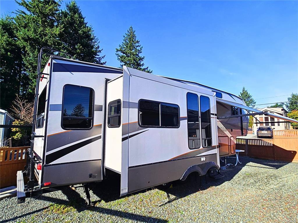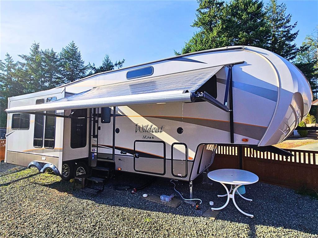 Welcome to Resort on the Lake, Nanaimo’s premier year round lakeside community. This turnkey package includes a meticulously maintained 2017 Forest River Wildcat Maxx 295RSX on a fully serviced, 2,612 sq ft fenced corner strata lot. The Wildcat Maxx offers dual opposing living room slides, a rear entertainment layout with large windows, solid surface counters, an island kitchen, electric fireplace, theatre seating, a walk around queen bedroom, and excellent storage. The lot features a newer 7x7 shed, parking for two vehicles, full hookups, and a hinged front fence section that swings open so you can back in, hook up, and head out on your next adventure. Enjoy mountain views, forested surroundings, and direct access to Westwood Lake’s 5.7 km trail, all just 10 minutes from downtown. Owners enjoy a 4,400 sq ft clubhouse, pool, hot tub, courts, and lake activities. Pet friendly with strata fees covering internet, cable, services, caretaker, and amenities. (Tax Assessment is Land Only)