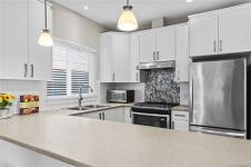 Quietness and Convenience! Step into a bright, 9 ft ceiling height, welcoming space with an open concept kitchen featuring quartz countertops, stainless steel appliances, and stylish cabinetry. The large living-dining area is perfect for relaxing, with a cozy natural gas fireplace and patio door to your private, flat, fully fenced, south-facing backyard. Upstairs, the generously sized primary bedroom is a true retreat with En-suite. Three additional well-sized bedrooms, a full 4-piece main bathroom, and a walk-in laundry room complete the upper level. On-demand hot water, HRV , and a natural gas FP for maximum energy efficiency and low monthly costs. This home is also ideally located just a short walk from Sooke Core, local parks, schools, pool, arena, and public transit. Enjoy easy access to hiking and biking trails, crabbing off the public dock, plus plenty of great dining and shopping options. This beautiful home offers the perfect blend of comfort, style, and convenience.