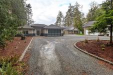 New Price! Sitting on over a rustic flat usable acre located on the Victoria side of Sooke. This beautiful classy Waterfront Estate with walk on waterfront ideal for kayaking, canoeing, or fishing off your front lawn. 2022 yr built, 3+ bed 2 bath 2000+Sqft custom rancher with open floorplan & unobstructed Ocean views, smartly done flooring throughout, gourmet style kitchen steps into the open dining area, facing the view, it is beside massive living room with gas fireplace, the master has smartly done planked ceiling finishes, walk in closet & ensuite, 2 other beds are good sized & there is a bonus den/media or office set up, the complete class starts immediately as you drive onto the property that has full privacy from the road, you see the wrap around driveway, you instantly see the large Rancher beside that you see the 2 bed 1 bath 1000sqft sqft Guest Cottage. + Bonus 1200sqft shop with 12ft ceilings. low maintenance manicured yard, lawns have an irrigation system.
