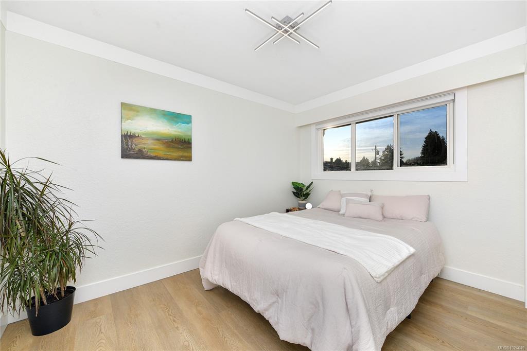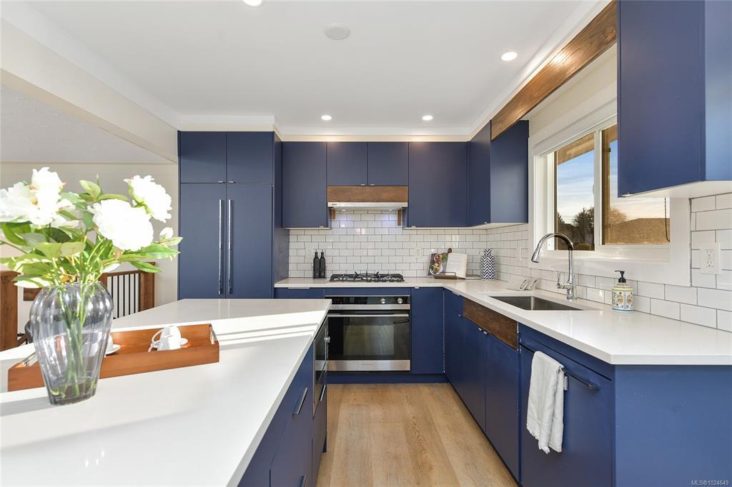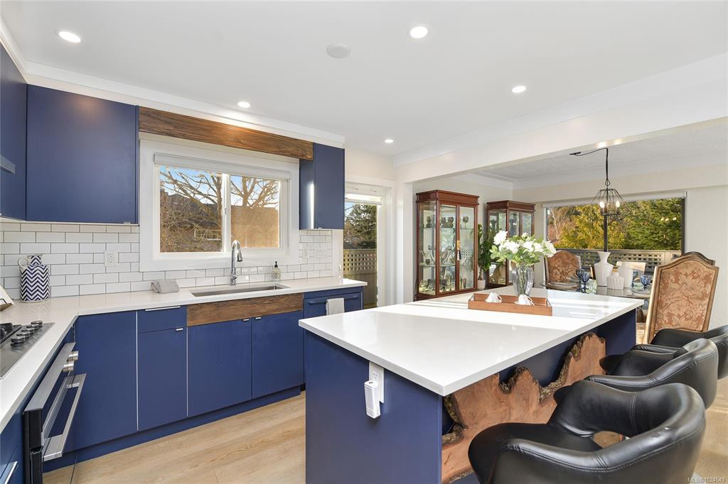 Welcome to this fully renovated 5-bed 3-bath home, ideally located just 5 minutes from the heart of Sidney and close to all levels of schools. Set on a quiet, low-traffic corner lot in a family-oriented neighbourhood, this home provides a refined blend of modern updates and easy everyday living. The bright, open-concept layout features luxury vinyl plank flooring, recessed lighting, & a cozy gas fireplace. The updated kitchen offers quartz countertops, a gas range, updated appliances, an eat-in island, & access to a large wraparound deck. 2 beds are located on the main level, w/ 3 additional beds & a spacious family room below, offering flexibility for families, guests, or home office use. Additional highlights include a dual-fuel heating/cooling system, metal roof, attached garage, & ample storage. Outside, enjoy a low-maintenance yard w/ apple trees, fragrant Provençal herbs, and custom garden boxes. Close to marinas, parks, and Sidney’s vibrant downtown. Easily suited if desired.