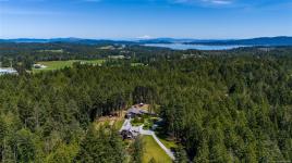 Experience exceptional Vancouver Island living on this private 37-acre estate, located in a foreign buyer ban–exempt area and within easy reach of Victoria. The 5,400sq.ft. custom home offers 6 bedrooms and 4 bathrooms, including a 1-bedroom in-law suite, with soaring ceilings, expansive windows, and beautifully crafted, light-filled interiors. Ideal for multi-generational living or group ownership, the property also features a 3,000sq.ft. shop with 18’ ceilings, dual overhead doors, and office/games room, plus a guest studio and detached cottage. Complete with pool, hot tub, barn, gardens, mature trees, open pastures, and a peaceful pond—perfect for hobby farming or equestrian use. A rare lifestyle opportunity. Full information and details available.