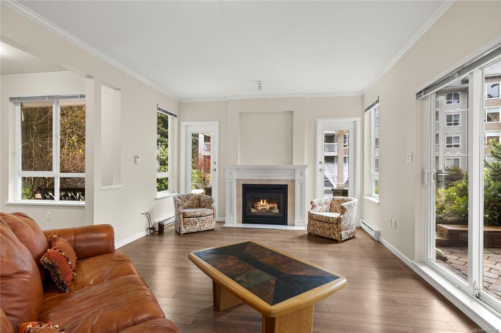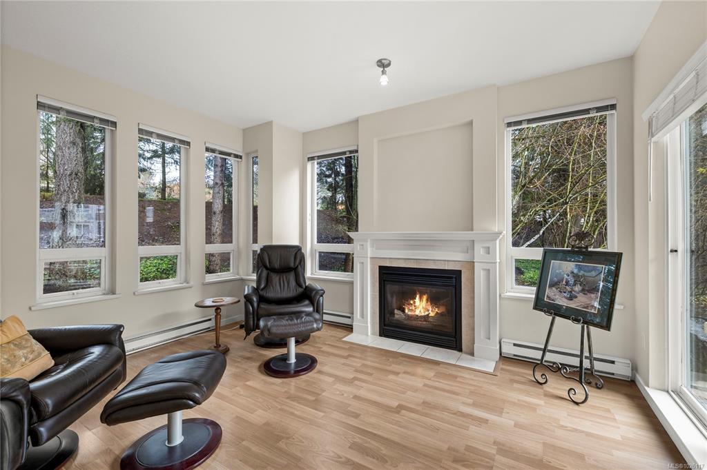 The Stonecroft Building in the Longwood community is set in one of North Nanaimo’s most sought-after neighbourhoods. This bright ground-level home offers nearly 1,500 sqft of thoughtfully designed living space, featuring 2 spacious primary bedrooms, each with its own ensuite & walk-in closet. 2 gas fireplaces create cozy gathering spaces, while 3 separate patios overlook the tranquil pond & gardens. The galley kitchen is well-appointed with stainless steel appliances, a pantry & gleaming quartz countertops. 2 underground parking stalls are located close to your entrance, allowing access directly into your home and an oversized storage locker is located on the 2nd floor. Through a secured gate, you’re just steps to Longwood Plaza, shopping, restaurants & the Oliver Woods. The Longwood community is known for its welcoming atmosphere and active lifestyle. Residents enjoy a private clubhouse complete with a gym, billiards room, kitchen for hosting events & guest suites available to rent.