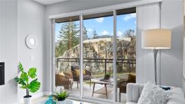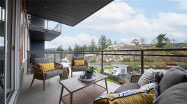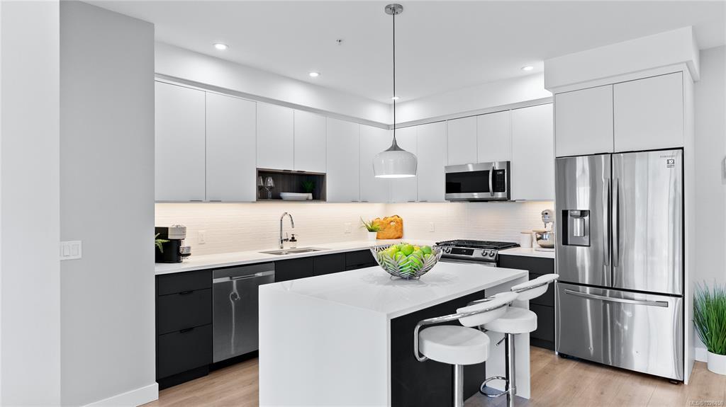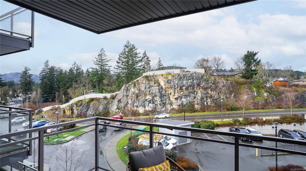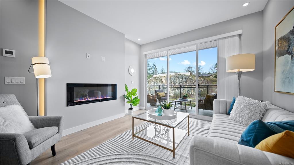 Open House Saturday Feb 21, 11-1pm. TWO pets welcome, TWO parking spaces and THREE Heat pump heads add to this rare quality built condo. Great quality pre-pandemic build when the costs to build was lower and access to quality materials was better. The Residence Two is a quality build building catering to the families who need 2 cars and would like to have 2 dogs. The kitchens are competing with the size of house kitchens. Gas stove, Gas hot water on demand, accent lighting beside the fireplace, bright continuous undercounter lighting in the kitchen, large THREE panel patio doors, huge windows in the bedrooms, Three heat pump heads to ensure each room is very comfortable and individually controlled. These are rare features you will find in a condo today. Place this in a centrally located spot and you have found the perfect spot to call home. Two mins to Costco, Save On Foods, five mins and less to Thetis, Langford and Florence Lakes!
