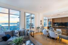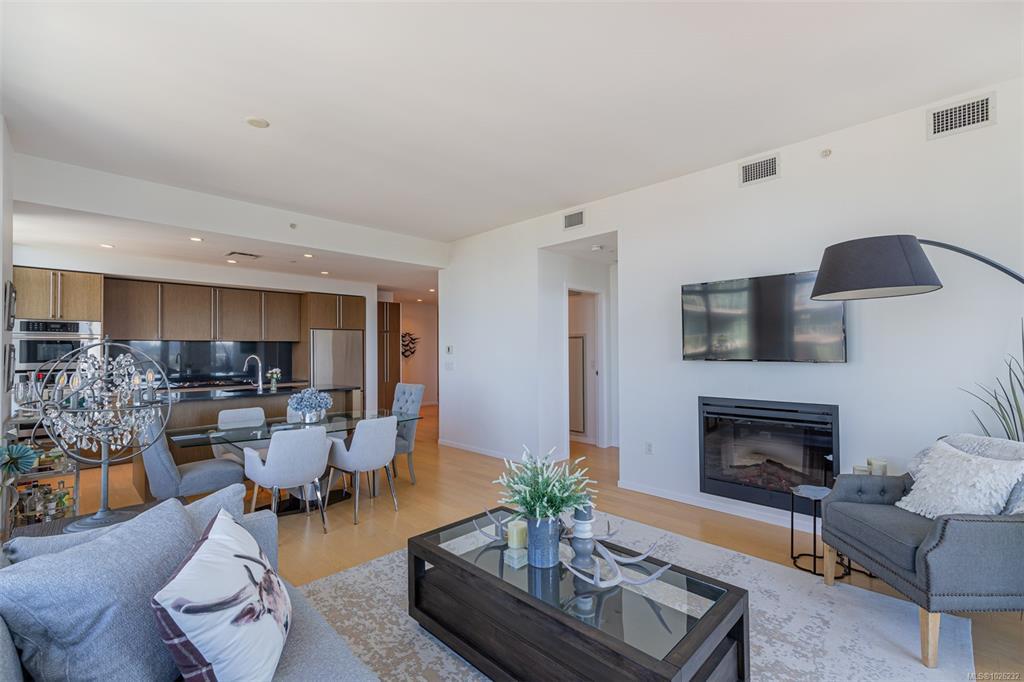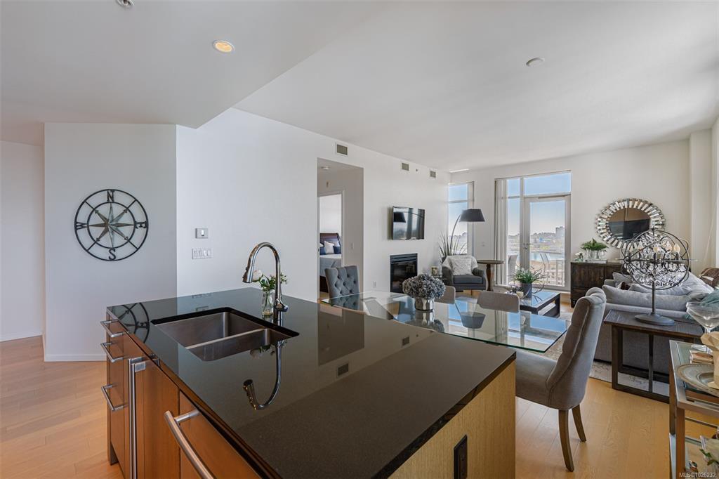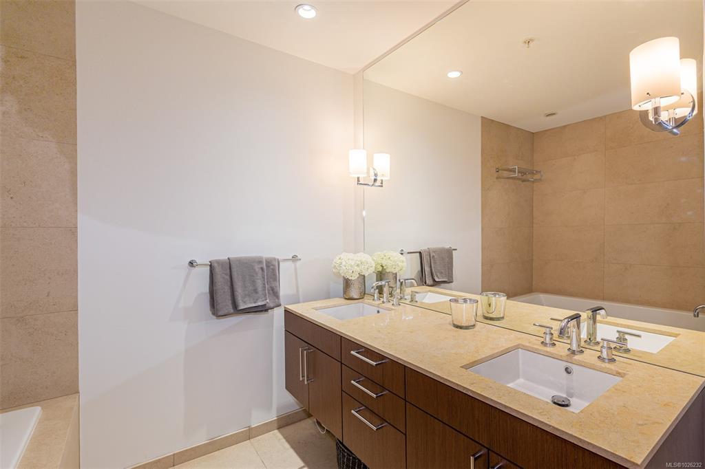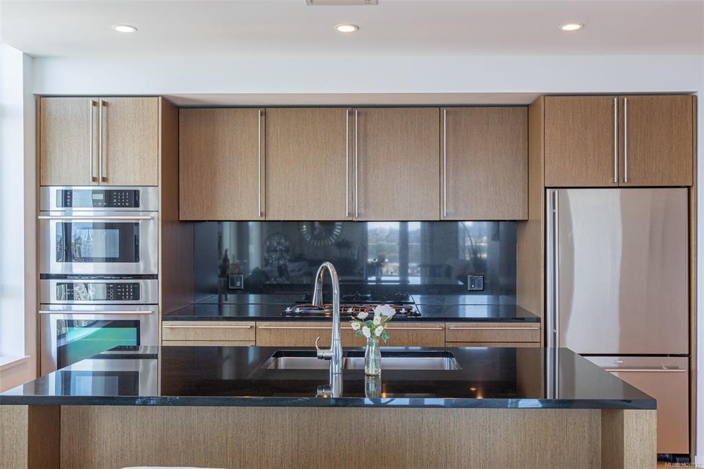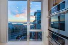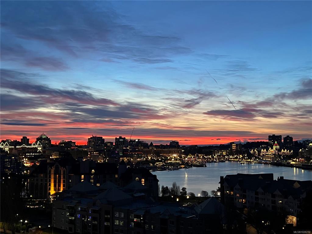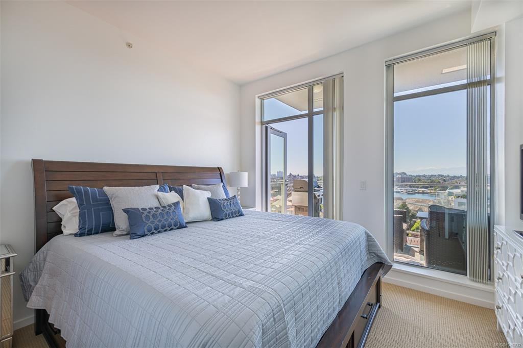 BAYVIEW ONE - subpenthouse- style, corner unit w/incredible southwest facing views across Victoria’s Inner Harbour to the Ocean & the Olympic Mountains. One of the city’s most coveted condo settings and quality concrete and steel bldgs offering executive amenities: owners’ lounge & BBQ area, fitness centre, hot tub, sauna/steam, boardroom, car wash, dog spa, guest suite, and concierge service. Entertain with ease from the designer kitchen complete w/upgraded appls incl. wolf gas stove, and a large island & dining area. Enjoy one of the building’s best balconies at sunset & the spacious layout featuring 10-ft ceilings, open-concept living and dining, and bedrm separation, both w/ full spa-inspired en-suites.