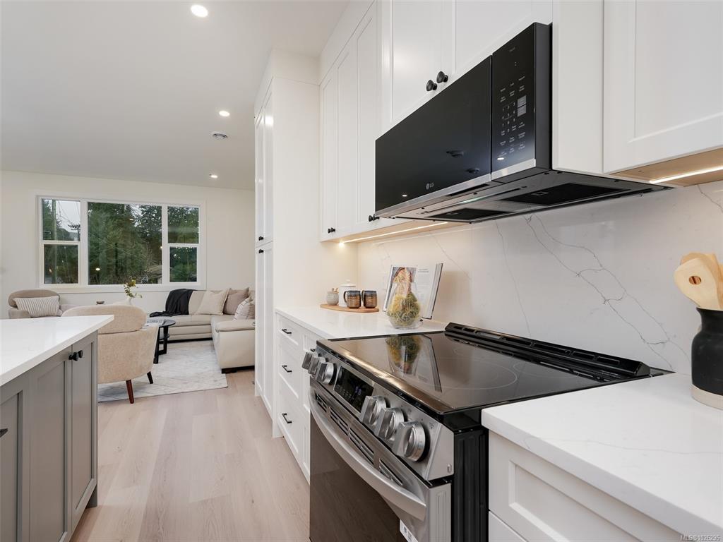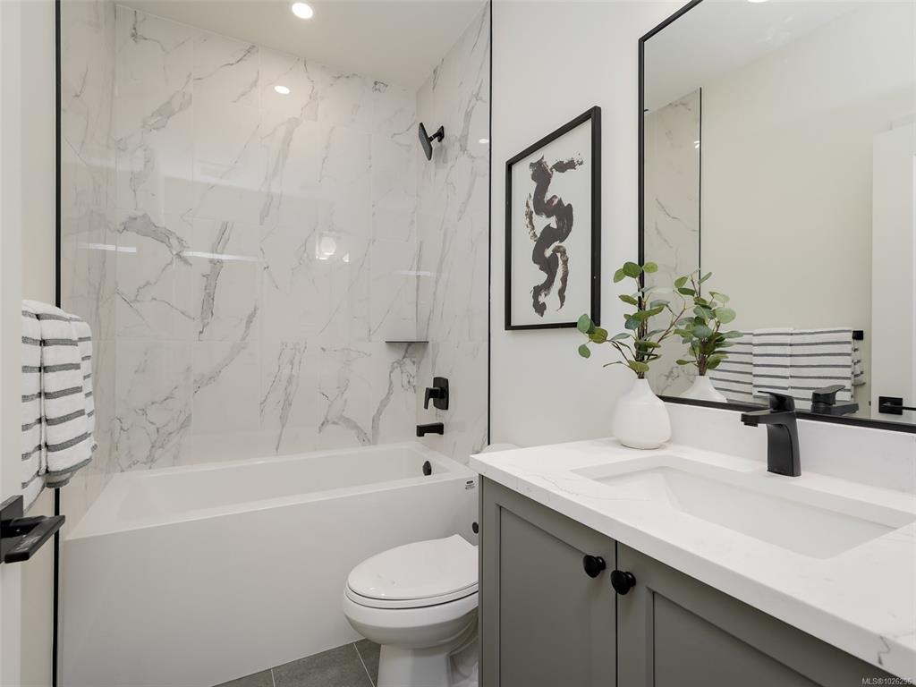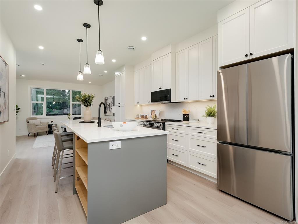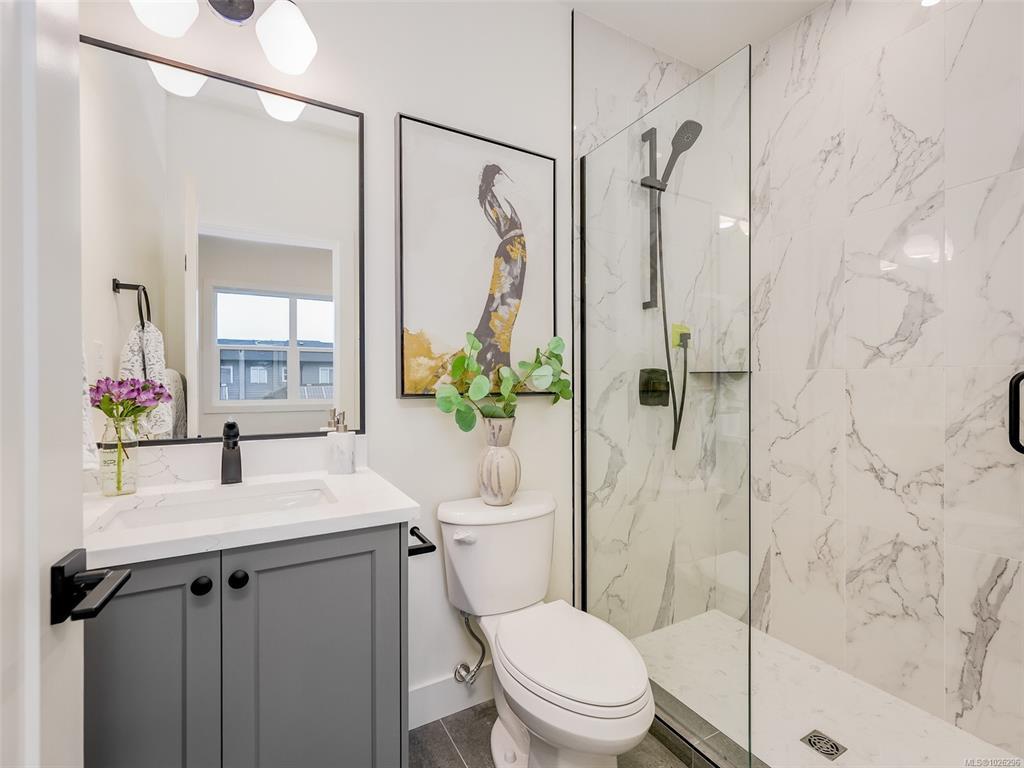 Glen Isle Townhomes @ 960 Jenkins - 8 Thoughtfully crafted homes that seamlessly blend everyday functionality with refined design. Situated steps from Belmont Market, they offer a peaceful retreat with all the conveniences of urban living at your doorstep. The main level boasts a bright, open-concept living space with oversized windows and electric fireplace. Upstairs, a well appointed 3 bed sleeping level, including laundry and generous primary with 2 closets & ensuite w/ heated floor. Comfort & quality abound w/ Premium Upgrades Included like 9 ft & Vaulted ceilings, Ducted Heat Pump system, ~43ft tandem garage w/ Epoxy coating, quartz counters & high end laminate floors. With modern design and walkable/bikeable location, this home is an exceptional opportunity to live in one of Langford’s most connected neighbourhoods. Photos may not be of the exact unit. Completion Est Mar 2026. Price+GST - Ask your Real Estate professional if GST & PPTT rebates may apply to you.