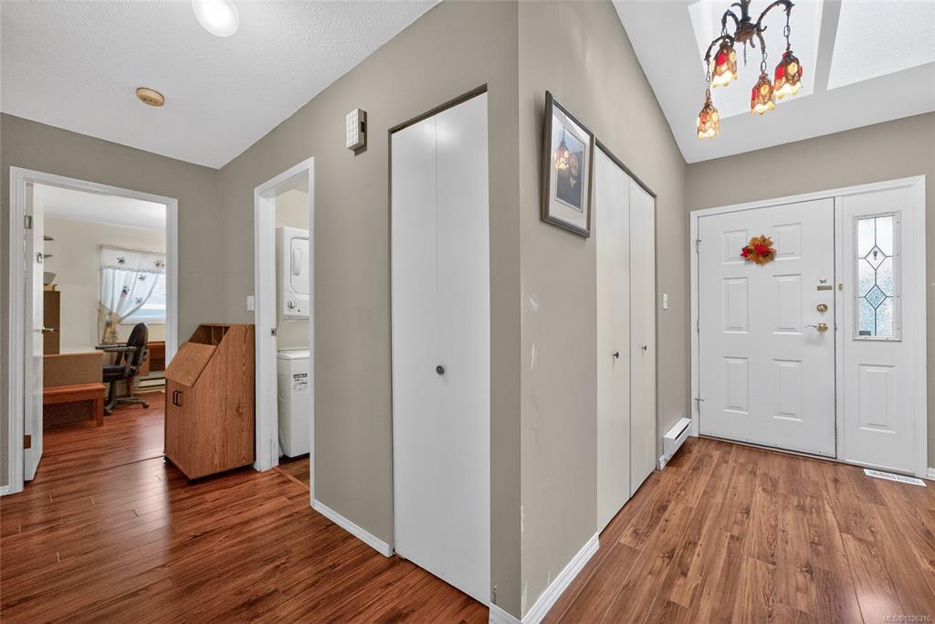 Welcome to 2462 Nadely Cres in Nanaimo’s desirable Diver Lake neighbourhood! This well-maintained 3 bed, 2 bath rancher offers 1,382 sq ft of comfortable one-level living, ideal for families, down-sizers, or anyone seeking an easy-care home in a great location. The functional layout includes an ensuite, walk-in closet, and a crawl space for added storage. Vaulted ceilings create a bright and airy feel, while a heat pump with air conditioning provides year-round comfort. Both bathrooms feature heated tile flooring for an added touch of luxury. Outside, the 6,837 sq ft lot offers a landscaped, low-maintenance yard with sunny southern exposure and garden space. Situated on a quiet no-through road, you’re just steps to Syuwenct Elementary School, with parks and trails all around & within 10 minutes to all local amenities. The home includes a double garage plus additional driveway parking. Two detached sheds (13x10 & 8x10) both w/power & workshop heated. Msmts approx, verify if import.