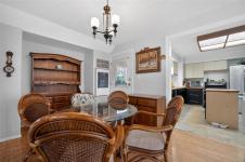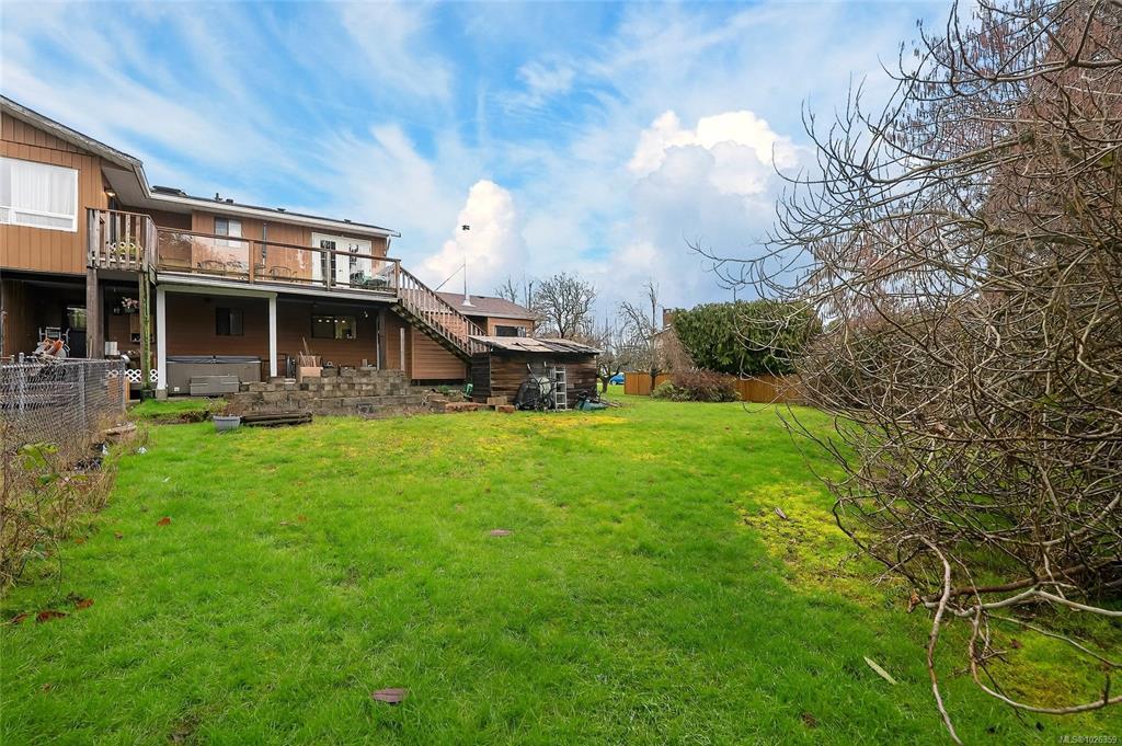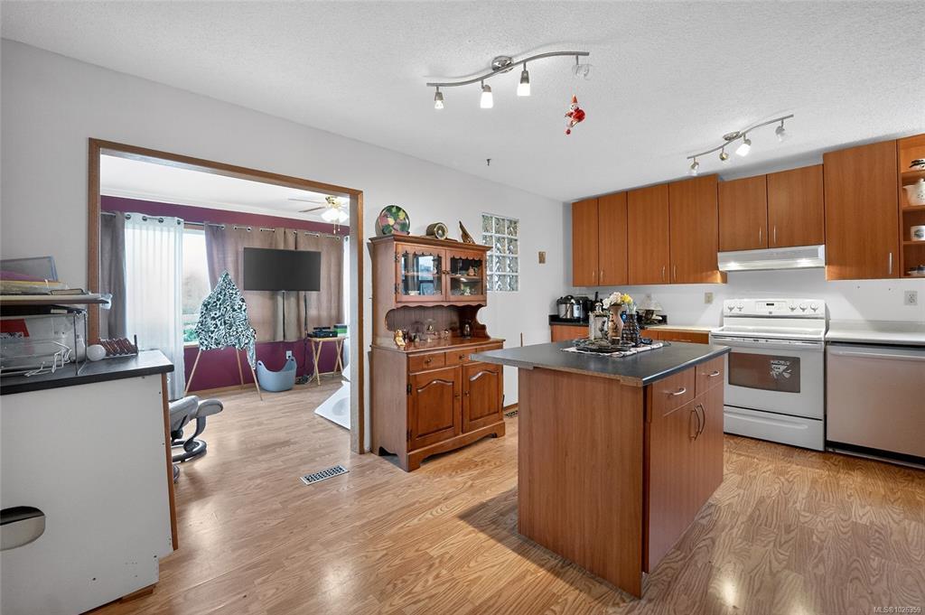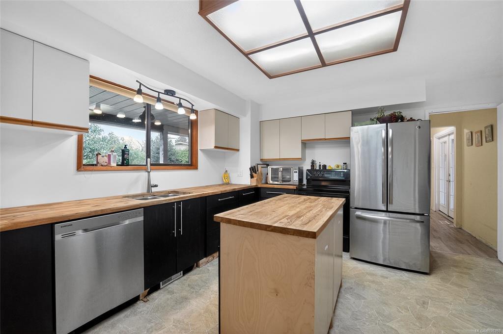 This bright Saltair home, just two blocks from the beach, offers coastal living with incredible versatility. Enjoy ocean views from the upper patio, accessible from both the primary bedroom and sunroom. Thoughtful features include oak hardwood in the primary, a spa-inspired ensuite with soaker tub, a cozy brick-accented woodstove, cedar details, and a spacious living room with charming window seat. The updated country kitchen shines with new appliances and a wood-topped island. Two kitchens provide excellent potential for an in-law suite. Outside, you’ll love the sunny backyard, deer-fenced veggie garden, established orchard with fruit trees, plus a workshop/tool shed and garden shed. Measurements are approximate, please verify if important.