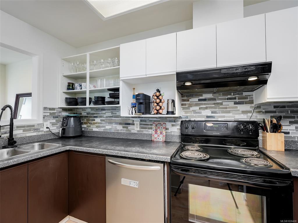 Welcome to The Sovereign—an excellent opportunity in one of Victoria’s most walkable and convenient neighbourhoods. This 2 Bed, 1 Bath 783 sqft TOP FLOOR CORNER UNIT 2 offers a bright, functional living space with desirable east-facing exposure and three skylights that fill the home with natural light. Freshly painted throughout, the open layout creates a comfortable flow between the kitchen, dining, and living areas. Enjoy the convenience of in-suite laundry, secure underground parking, and a separate storage locker. The well-managed building includes hot water and water in the strata fee for added value. Quietly located just steps to Quadra Village, cafés, shopping, parks, transit, and an easy commute to Downtown or UVic. A fantastic opportunity for homeowners or investors seeking comfort, location, and long-term value. Welcome Home!