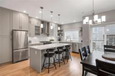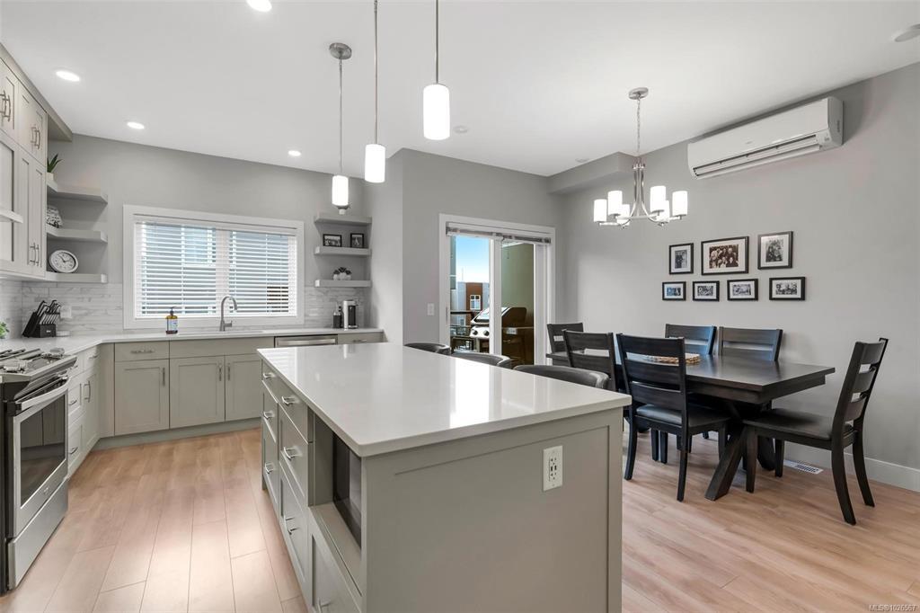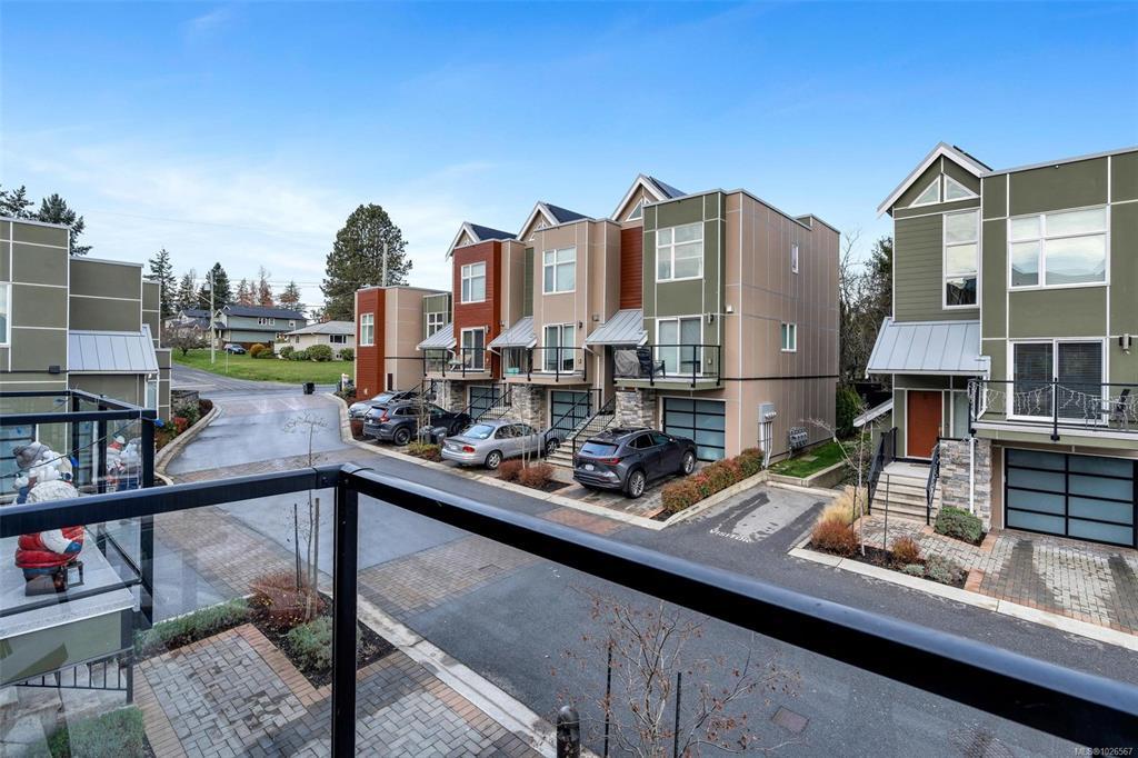 Stunning Royal Oak townhome located at "The Reeve." Offering over 1,550 sq.ft., this 3 Bedroom, 3 Bathroom plan features an open main floor plan with chef's kitchen with a large island, gas cooktop & stainless appliances. Living room with gas fireplace & separate dining area with access to a south facing balcony w/ gas hook-up for the BBQ. Upstairs, you'll find the primary bedroom with 4 pce ensuite, second bedroom, laundry & 4 pce bathroom. The lower level features the 3rd bedroom, 2 pce bath and access to a south facing walk-out patio. Solar voltaic panels, central heating & air conditioning and on-demand gas hot water make this a very efficient home. EV charger in the garage and driveway parking for your second car. Shows like new & is great for families & pet-friendly. Centrally located next to Brydon Park & within walking distance to Country Grocer, Royal Oak Middle School restaurants and trails.
