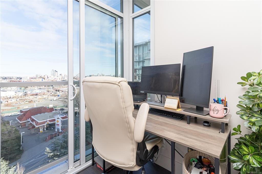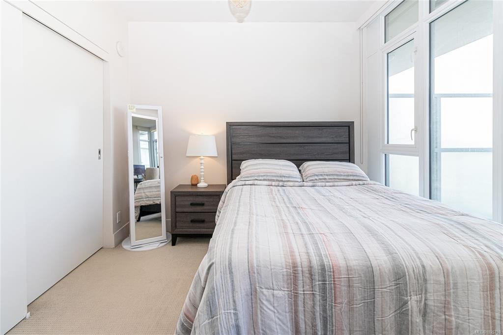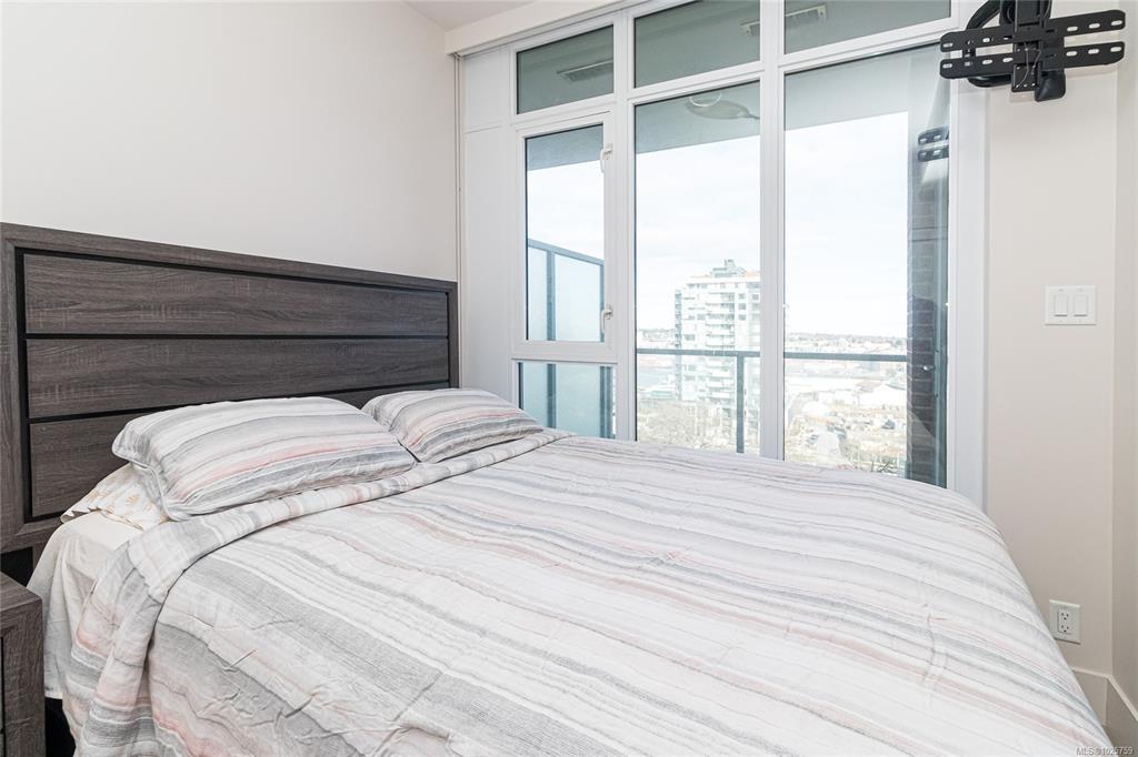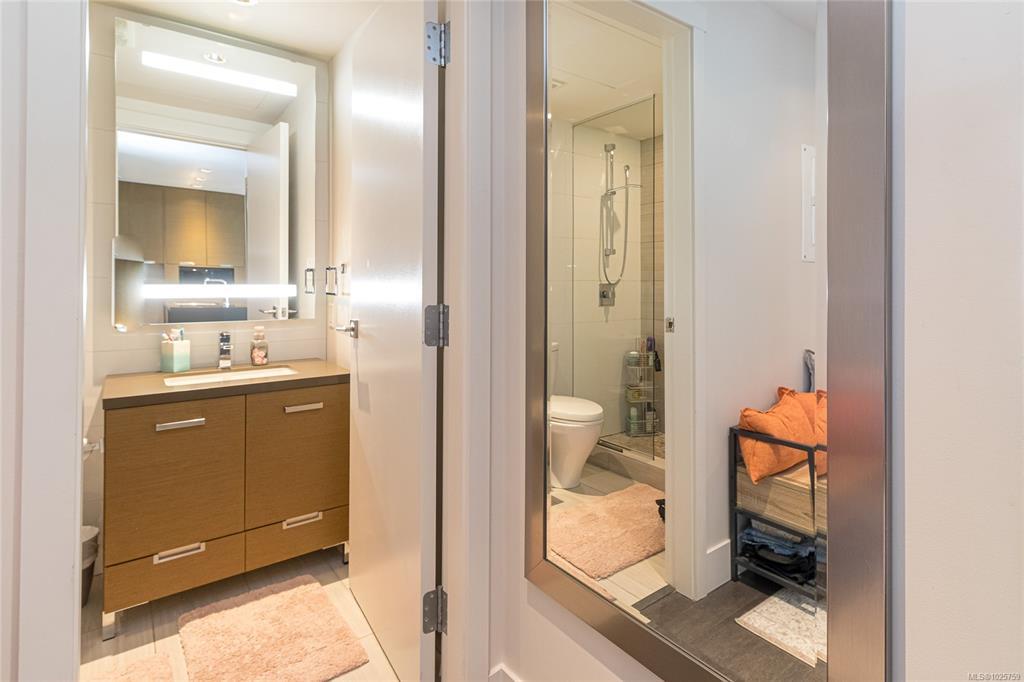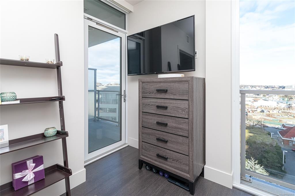 “Promontory” by Bosa where luxury & comfort come together. This well appointed condo offers designed living spaces, perfect for those seeking an urban lifestyle. The kitchen has high-end appliances incl. a gas cooktop, integrated Miele fridge/freezer, TV hook up & a stacking washer/dryer. Enjoy views of downtown & Inner Harbour from your private balcony, living room & bedroom. A generous in-suite storage room provides exceptional flexibility & could function as a private home office. Additional highlights include a secure underground parking stall, separate storage locker, bike storage & air conditioning. Resident amenities - an elegant lounge w/ kitchen & BBQ areas & a fitness room. Located just steps to downtown, Songhees Walkway & the Galloping Goose Trail. Pet-friendly living is enhanced by a nearby off-leash park, perfect for your four-legged companions.