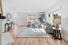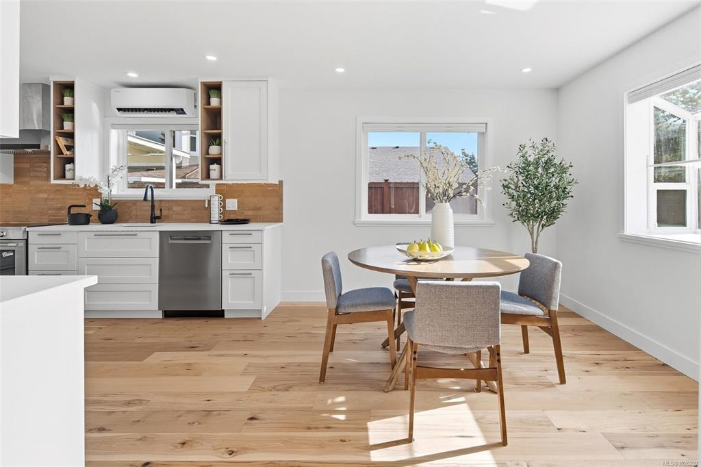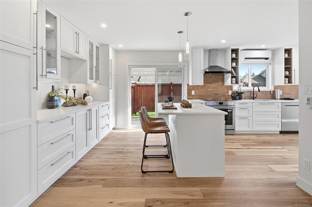Welcome to this immaculate, contemporary rancher in sought-after Lochside Estates, offering over 1,400 sq ft of fully renovated living space complemented by a double garage, private patio, and dedicated gardening area. Thoughtfully reimagined throughout, the home features engineered wide-plank hickory flooring, a refined modern kitchen with quartz countertops and new appliances (w/5 yr warranties), and bright bathrooms with continuous floor to shower tile and quartz surfaces. Set in a quiet corner of this distinct cul-de-sac, the home enjoys excellent privacy, sunny exposure, raised garden beds, and a newly fenced patio—ideal for outdoor enjoyment. Just one block from a waterfront park with walking trails, and conveniently close to Sidney, the Lochside Trail, the airport, ferry terminal, and Saanich Peninsula Hospital, this is an exceptional Peninsula location with both tranquility and accessibility.