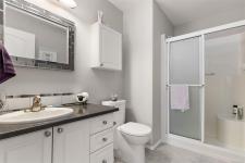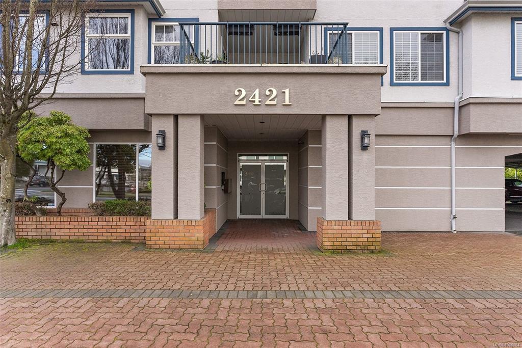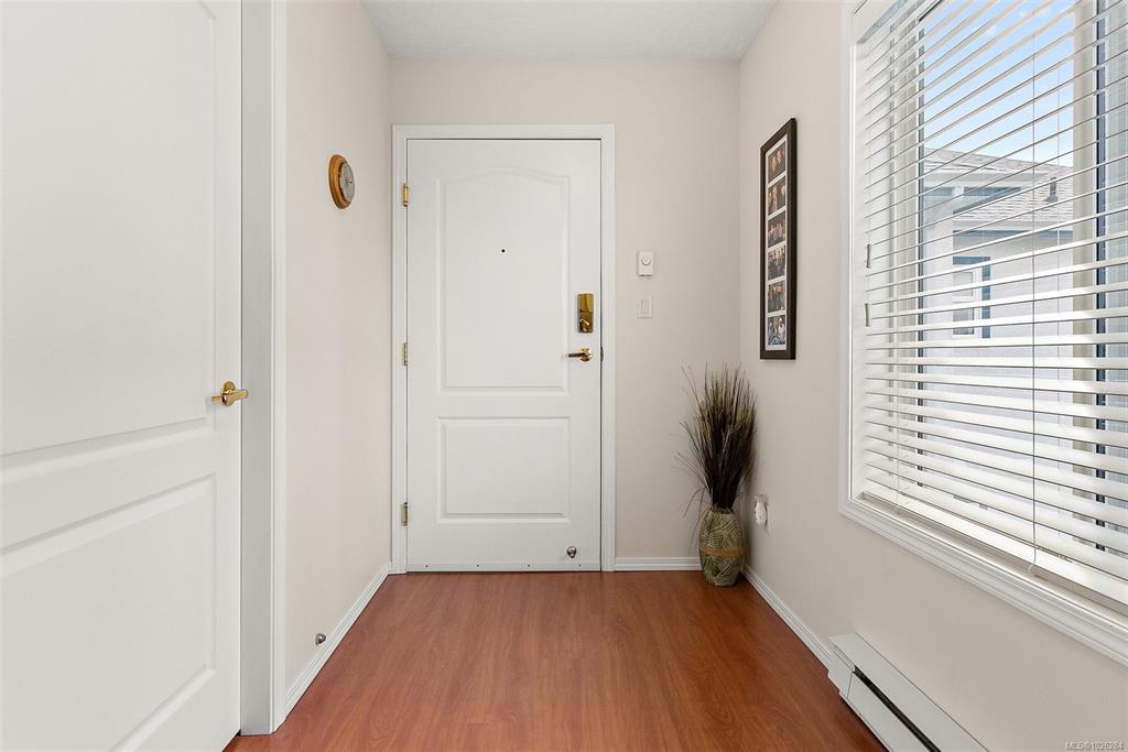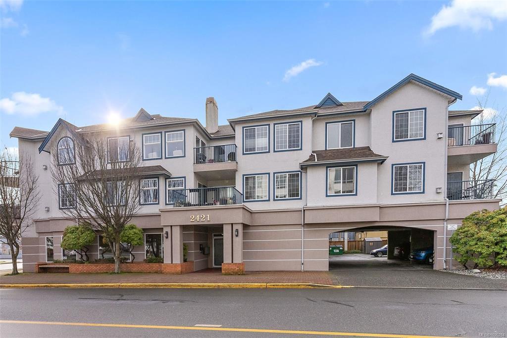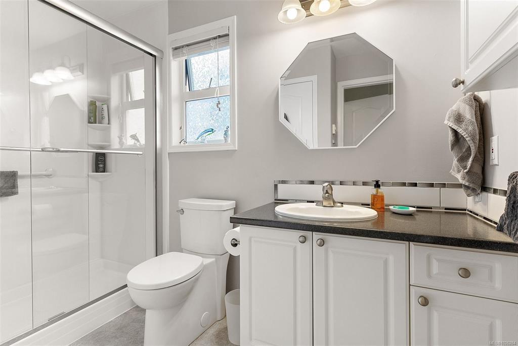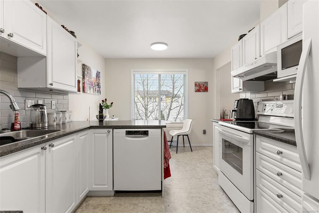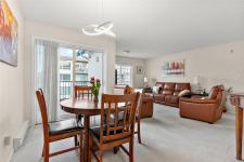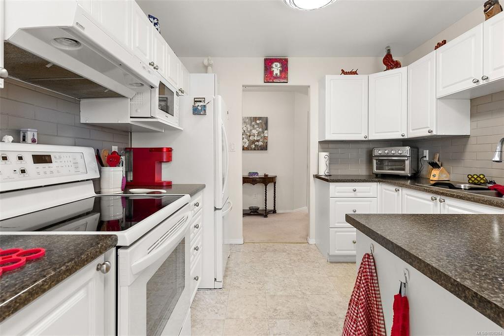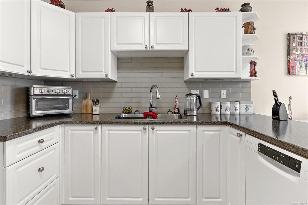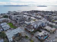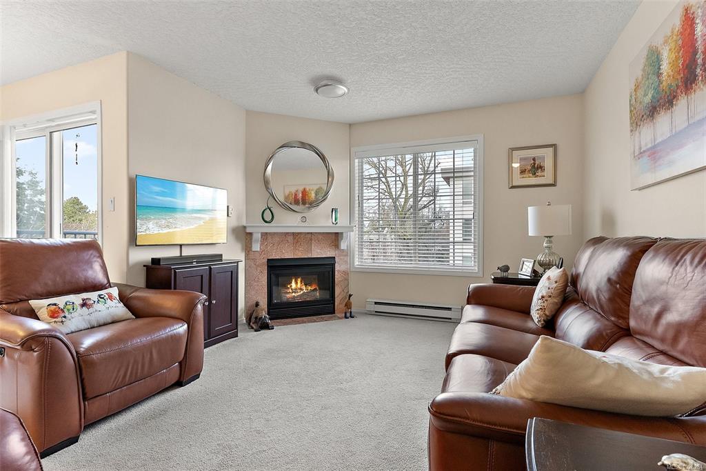 The heart of the home is a generous living room centered around a cozy gas fireplace—perfect for quiet evenings. The primary suite serves as a true retreat with a beautifully appointed ensuite, while the second bedroom features a clever Murphy bed for effortless versatility. Located just steps from Sidney’s vibrant waterfront, the Star Cinema, and local boutiques, this home perfectly balances the convenience of downtown living with the quiet warmth of a true sanctuary.