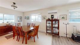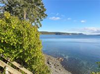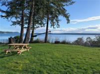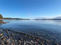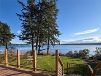 The home features a new roof, an open-concept kitchen and living area oriented toward the views, and sliding doors to a spacious waterside deck. The lower level (approx. 1,120 sq ft) is unfinished with three rooms and a workshop, offering excellent potential for future development. Heat pumps on both levels provide efficient year-round comfort. The level property offers excellent usability and strong gardening potential.There is currently no usable beach access from the property, as the original stairway requires repair; however, convenient shoreline access is available nearby via a public trail.