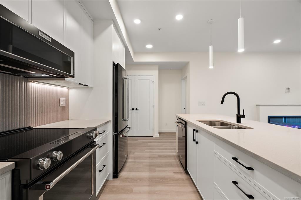 Move in ready!! Located in the heart of Esquimalt Village, The Proxima is perfectly positioned for a life full of adventure, experiences, & amenities w/ Saxe Point Park, local breweries, Esquimalt Market, shopping, & the Archie Browning Sports Centre just a stone’s throw away. Unit B304 is located within the back Bellus building in a spacious 2 bedroom, 2 bathroom floor plan with quartz countertops, eat-in kitchen island, and black stainless KitchenAid appliance package. This unit is inclusive of one underground parking stall and storage locker. Brought to you by award winning GT Mann Contracting and superior design by Spaciz Design. The grand glass lobby welcomes residents to enjoy the state of the art gym, atrium, and courtyard – live life your way at The Proxima.