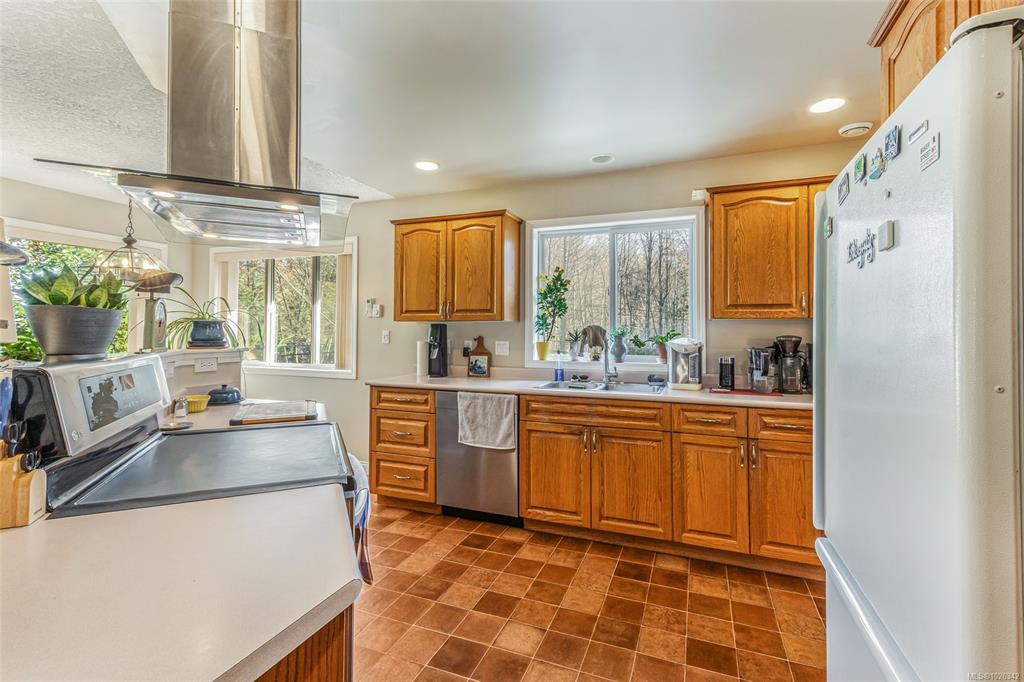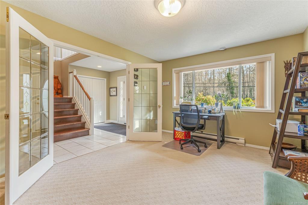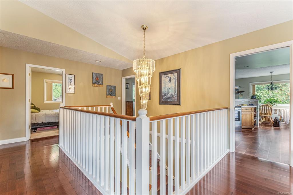 This South facing two story 3200 sq ft home in Mill Bay's idyllic Deer Park features several recent updates that offer a seamless flow between indoor and outdoor living. Situated on private fully treed .34 of an acre which includes east side RV parking along with a newly built workshop/shed for the hobby enthusiast. Inside you'll enjoy the grand foyer which leads to the traditional floorplan featuring two distinct levels, consisting of 4 bedrooms & 3 baths along with a front office/den, with the full in-law suite, complete with separate bath & bedroom all on the ground level. Upstairs enjoy the Cherry hardwood & the new natural gas fireplace in the quaint cozy living room offering separate dining and featuring the chefs kitchen with adjoining family room including newer built-ins. As the tour leads you to the fully covered deck & upscale private backyard oasis for family and friends to enjoy all year long. Shopping, schools and recreation in close proximity make the advantages endless.