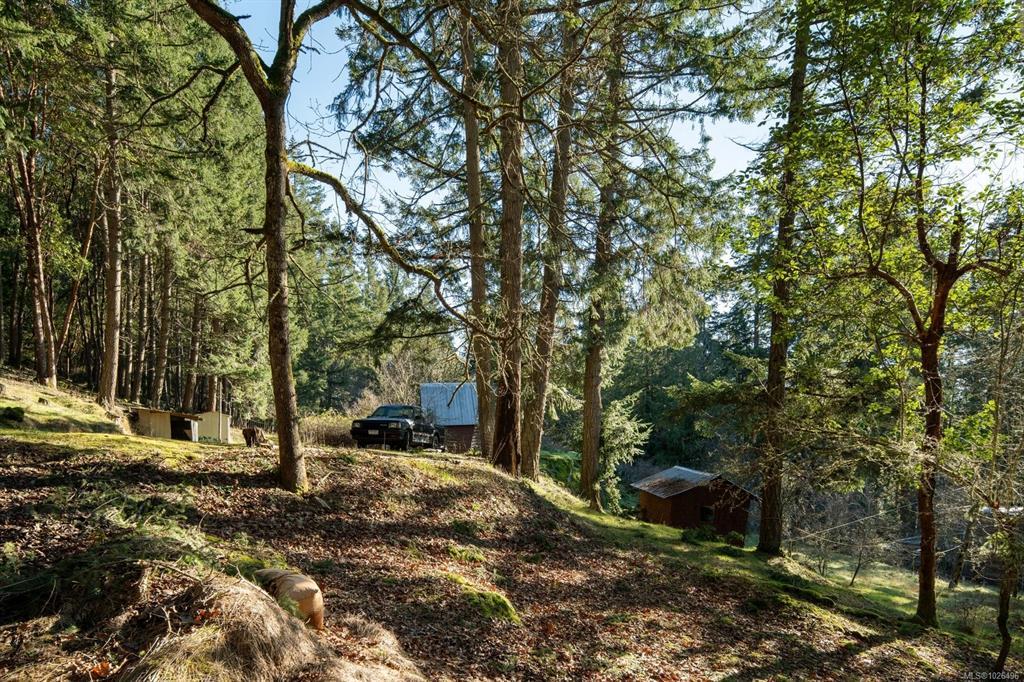 A truly rare and exceptional offering in North Saanich: 1183 & 1193 Hillgrove Rd, two legal titles totaling 2.9 acres with R-3 zoning. Comprised of 1.83 acres & 1.07 acres, this property presents outstanding future potential to build two single-family homes, with zoning that allows either guest cottages or secondary suites on parcels over 1 acre—an excellent opportunity for multi-generational living. Tucked away at the end of a quiet no-through street, the land is fully fenced and surrounded by mature forest, ideal for livestock or a hobby farm while offering a private, park-like setting. The existing 2 bed, 1 bath home (1,168 sq.ft.) offers flexibility to rent or occupy while planning future development, or may be removed to maximize the property’s potential. Features include a private well for irrigation, southern exposure, and a mix of sloped, treed hillside with flatter usable land below. Hiking trails connect near the driveway entrance.