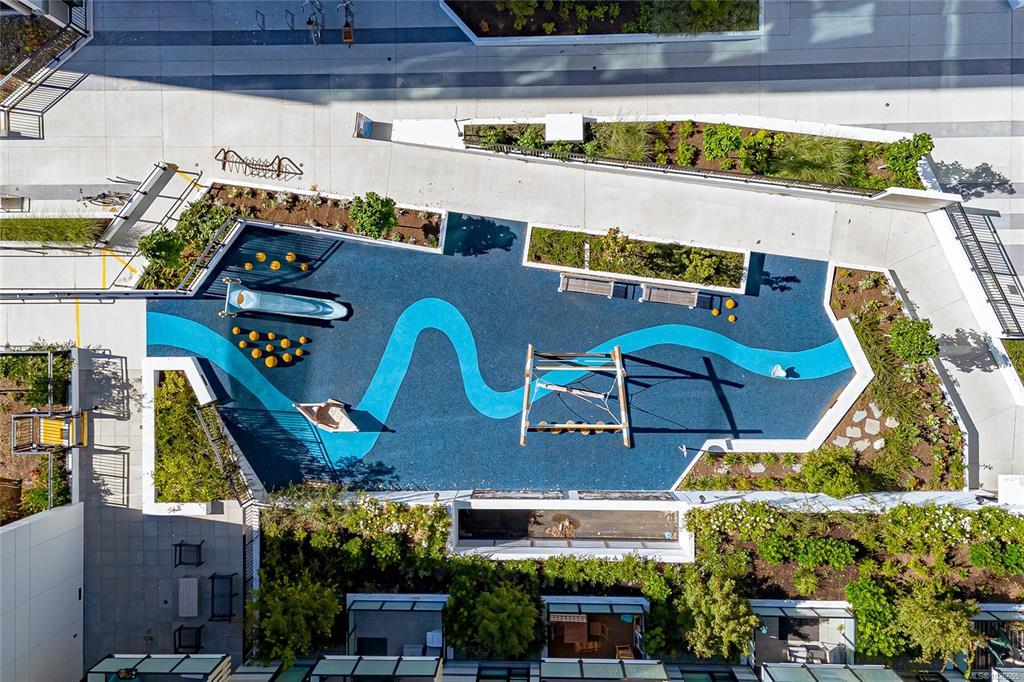 This like-new, top-floor modern unit is filled with natural light, over-height ceilings and a smart, efficient layout that creates a comfortable living space. Luxury vinyl plank flooring offering a seamless look and easy care. The stylish kitchen boasts ample cabinetry, while the in-suite laundry includes extra storage. A spacious 4pc bathroom, excellent lighting, and white blackout window coverings. Enjoy access to a car & e-bike-share program, plus thoughtful amenities. Dog lovers, there is a on-site pet run and wash station. There’s also an outdoor children’s play area and a meeting/media room. Ideally located on Upper Johnson, you’re within easy walking distance to the Fernwood and Rockland neighborhood's, close to downtown Victoria’s vibrant events and attractions, and just south of beautiful Beacon Hill Park. With two excellent grocery stores nearby, you can comfortably leave the car at home. Presented in show-suite condition, this home is move-in ready and sure to impress.