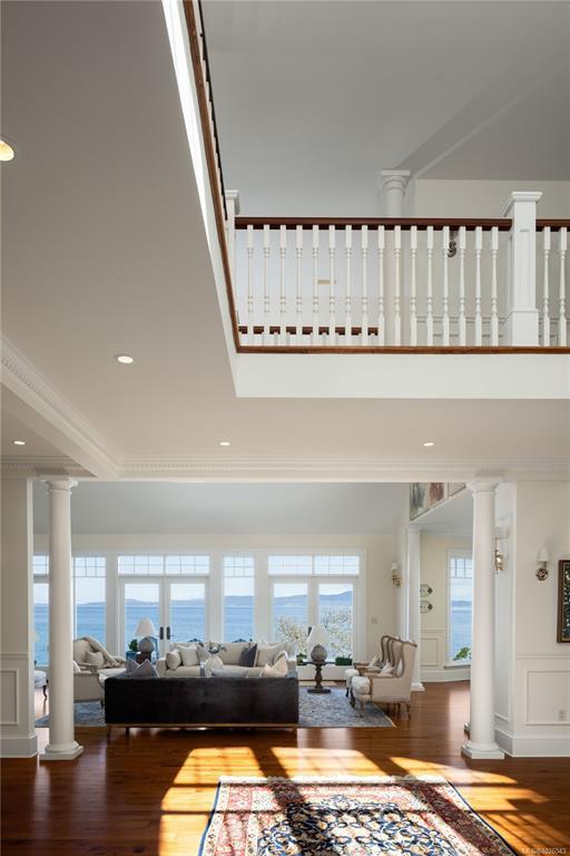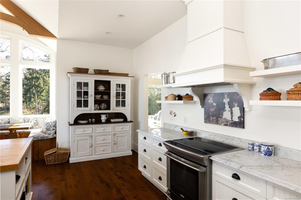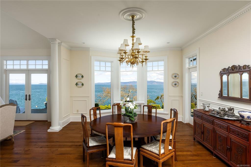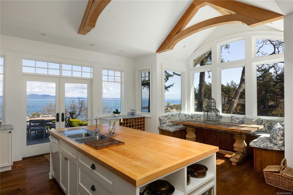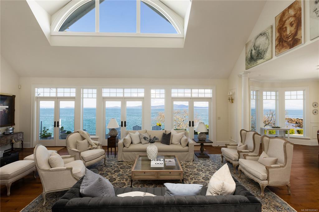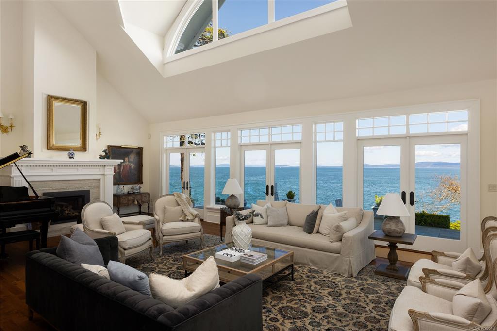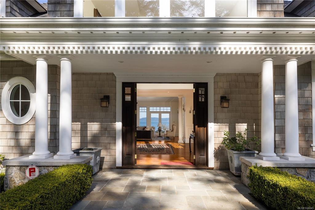 Welcome to 2600 Queenswood Drive, an oceanfront retreat nestled on nearly 2.8 acres in one of Vancouver Island’s most prestigious enclaves. Gated & private, with the potential to subdivide, this estate offers panoramic views of the Haro Strait, Gulf Islands, and Mt. Baker. The Hamptons-style residence blends classic East Coast charm with West Coast ease, featuring more than 6,000 sqft of living space. Soaring ceilings, expansive windows, and a seamless connection to the outdoors define the main level, which includes a sophisticated living room & dining area, a hand-built Walnut library & a chef’s kitchen designed for both function & flair. The main level primary suite is a true sanctuary, while the upper level offers 3 additional bedrooms, 2 with ensuite. A walkout lower level includes a flexible studio. Lush landscaping, stone pathways, a private launch point for kayaking & a detached 3-car heated garage complete this rare seaside setting—just minutes to Cadboro Bay Village and UVic.