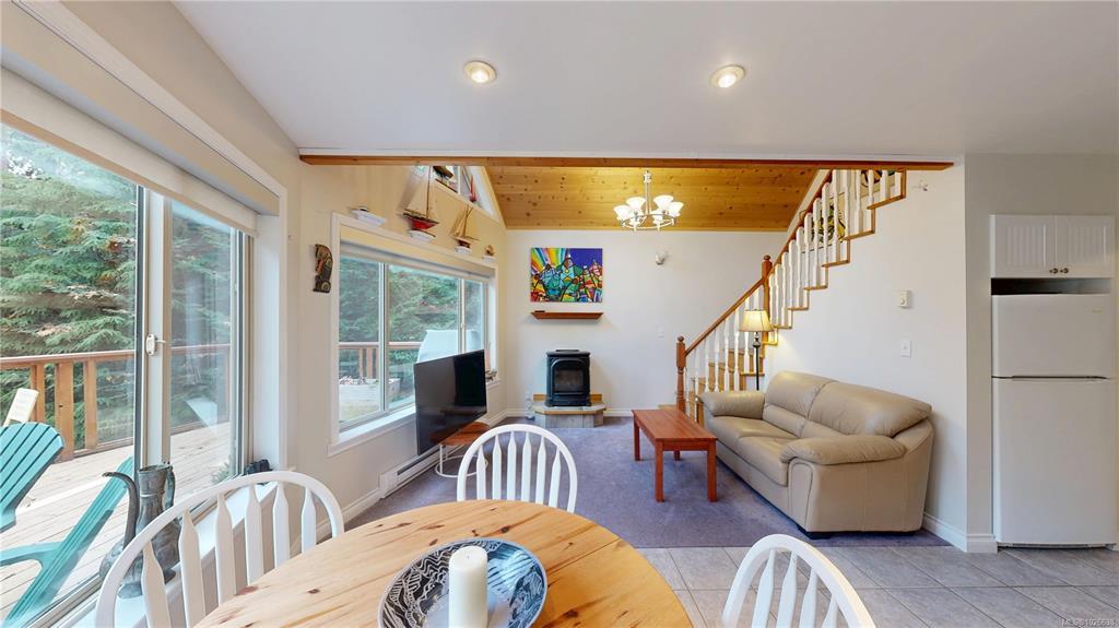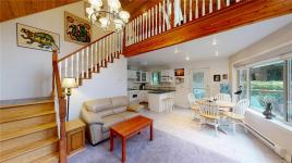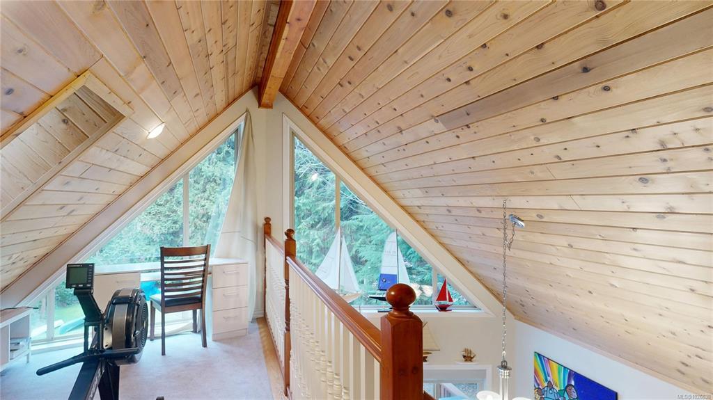 West Coast cedar-sided 2-bedroom, 2-bathroom home with metal roof, situated on 0.60 acres close to the ferry, village shopping, and a short walk to Descanso Bay. Spacious deck overlooks the yard, where 1,000+ deer-proof daffodils bloom in season. Inside the 902 sq ft home, vaulted ceilings and large windows create a bright, open feel. The main level features a kitchen with propane oven, living room with high wood ceilings, and dining room opening to the deck, plus a bedroom and full 4-piece bath with laundry. Upstairs offers a loft/office space, spacious primary bedroom with architectural angles, and a 2-piece bath. The home is serviced by cisterns with filtration and UV system, and the septic system has had recent upgrades. An ideal blend of privacy, character, and proximity to the essentials — a property that truly feels like Gabriola. A full information package is available, including video, floor plans, and virtual tour. All information to be verified if deemed important.