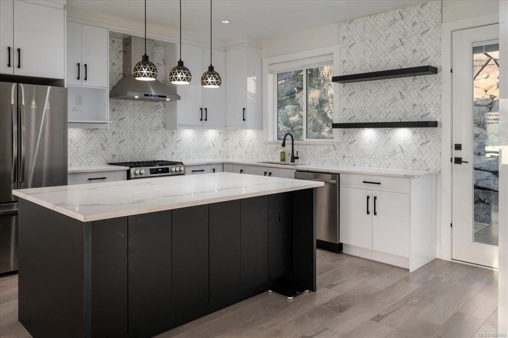 Beautiful custom-built 6 bedroom, 4 bathroom home on a quiet no-thru street offering stunning views of Mt. Benson & bright southern exposure. Built in March 2022, this modern residence features 2-bedroom legal suite with separate entrance & its own BC Hydro meter—ideal as a mortgage helper or investment. Enjoy the open-concept layout with large windows, quartz countertops, & a cozy gas fireplace. The spacious front patio with glass patio doors invites plenty of natural light, while the low-maintenance yard allows you to spend more time enjoying life. A park is located directly in front of the house, creating the perfect setting for families with small children to play safely. Located in a desirable new development close to malls, parks, schools, & other amenities, this home perfectly combines style, convenience & comfort. A rare opportunity for families or investors seeking a bright, contemporary home in an excellent location with mountain views & all the essentials just minutes away.