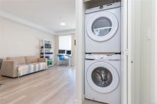 The unit includes one parking stall and one storage locker, plus access to secure bike storage in the building.