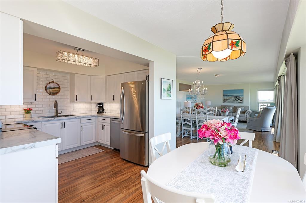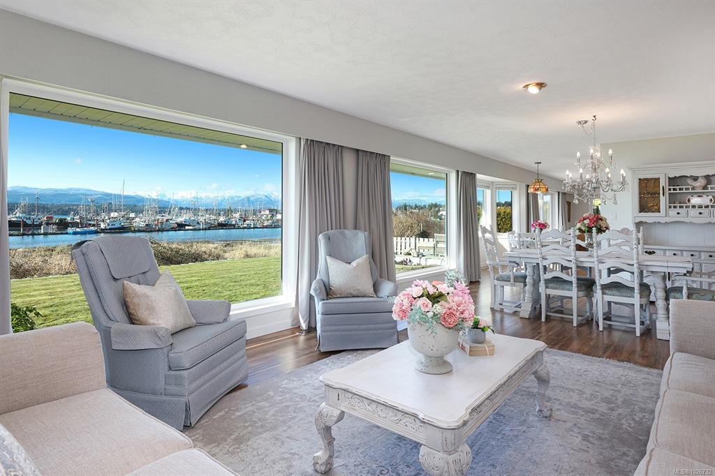 Experience waterfront living at its finest in this elegantly updated 2,018 sqft rancher on one of Comox's most sought after streets. Set on a private 0.29-acre lot, wake up to the life-giving sunrise over the Comox marina and unwind in the evening on the back patio, enjoying the company of friends and family as you soak in the glow of a coastal sunset. Expansive windows and skylights fill the home with abundant natural light, highlighting every detail and accentuating the ocean views. Watch marine wildlife from the comfort of your living room, or enjoy a leisurely stroll to Comox’s vibrant downtown core and food scene. Each season here is a seaside paradise.