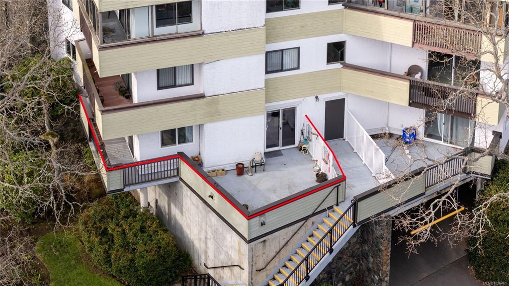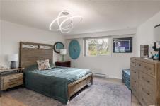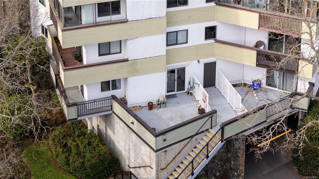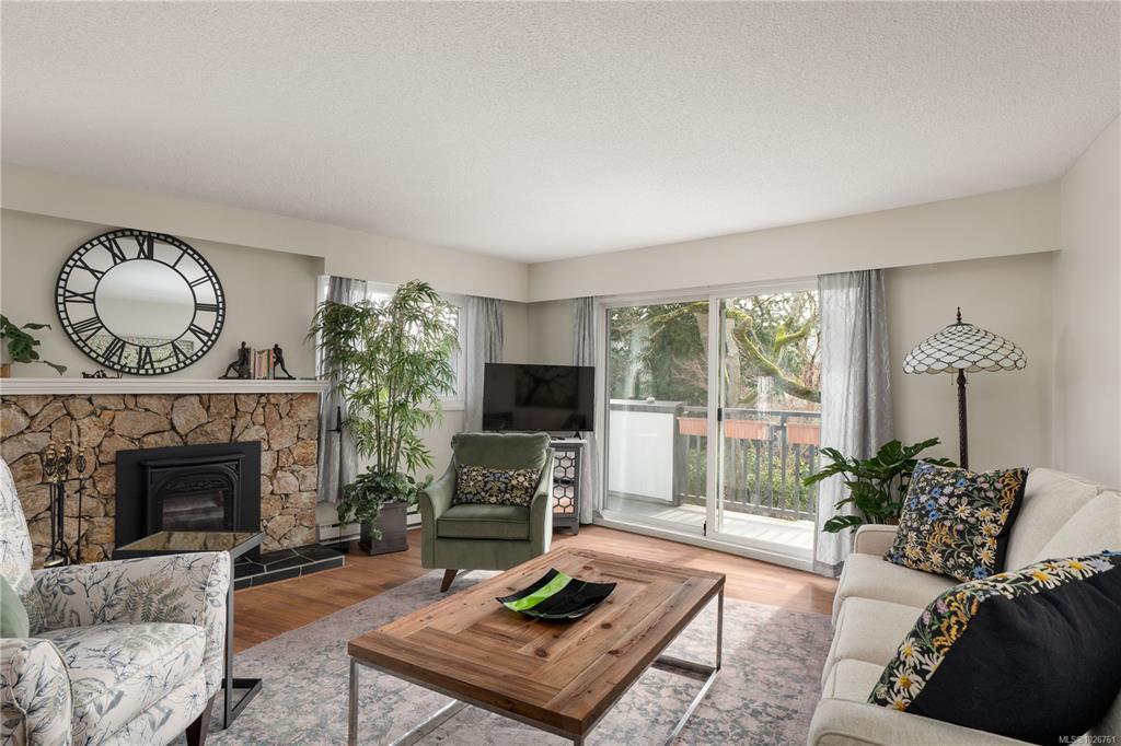 Welcome to Unit 116 at Oakdale House! This beautifully updated ground-floor, SE-facing corner unit provides 1,140 sqft of living space in the sought-after University Heights neighborhood. With 2 bedrooms and 2 bathrooms, the generous layout features an exceptionally spacious living room and a large primary bedroom with a fully refreshed ensuite. The sheer size makes it a fantastic option for downsizers! Enjoy abundant natural light and a cozy propane fireplace with a timeless natural stone surround. A rare find for a condo, the kitchen includes a convenient pantry alongside brand-new stainless steel appliances. Step outside to 372 sqft of outdoor space across two private decks (East and South facing), overlooking a serene park-like setting. Updates specific to this unit include upgraded vinyl windows, new flooring, fresh paint, modern lighting, and new in-suite laundry. Prime location steps to UVic, transit, and Tuscany Village. Includes 1 parking space and 1 storage locker.