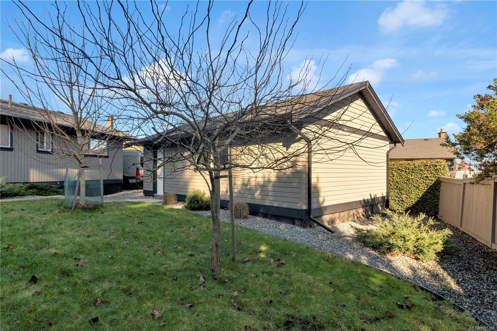 Located in the desirable Cilaire neighbourhood, this beautifully renovated 1,450 sq. ft. rancher offers effortless one-level living with a clean, modern feel. Lovingly maintained & thoughtfully updated, the home features a bright, functional layout, contemporary finishes, & smart home upgrades designed for everyday comfort. The kitchen includes quality appliances & tiled flooring, while both bathrooms feature heated tile floors for added luxury. A standout feature is the powered 18x28 detached workshop with 60-amp & 220V service & an approximately 7-foot door, making it an ideal setup for hobbyists, car enthusiasts, or extra workspace, along with an oversized attached single garage. The private, landscaped yard is designed for low maintenance & is pre-wired for garden lighting. Perfectly suited for an older couple or professional buyers seeking stylish, low-maintenance living. Enjoy a short walk to Departure Bay Beach & quick drive to Nanaimo Golf Club, shopping, and amenities.