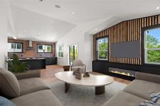 Welcome to this almost-new 2024 built 5 bedroom, 4-bathroom home in a quiet, family-oriented neighbourhood just a short walk to town, shops, schools and trails. Thoughtfully designed with a bright, open-concept main level, the home features wide-plank flooring, oversized windows, and a modern kitchen with sleek cabinetry, a large island, and stylish finishes. A contemporary linear fireplace feature wall anchors the living area and opens to a sunny outdoor space — perfect for entertaining. A self-contained 1 bedroom suite above the garage offers excellent mortgage helper or family flexibility. Turn-key, stylish and conveniently located — ideal for growing families or investors.