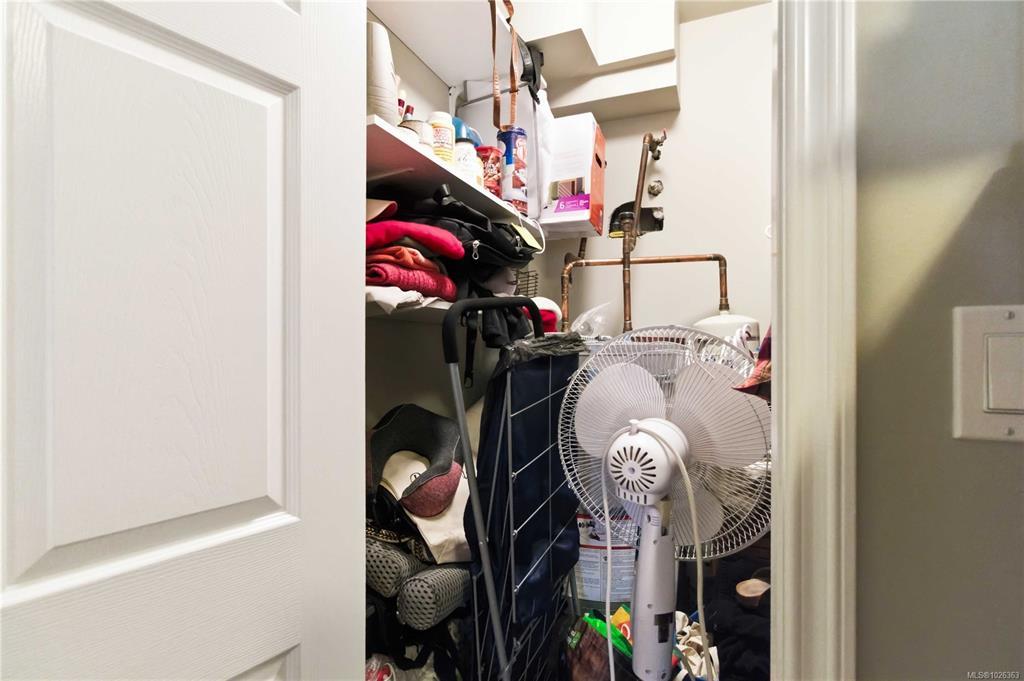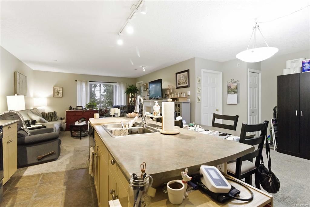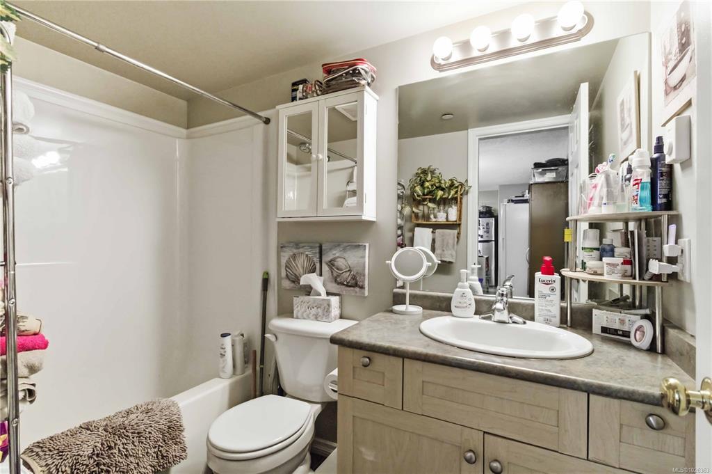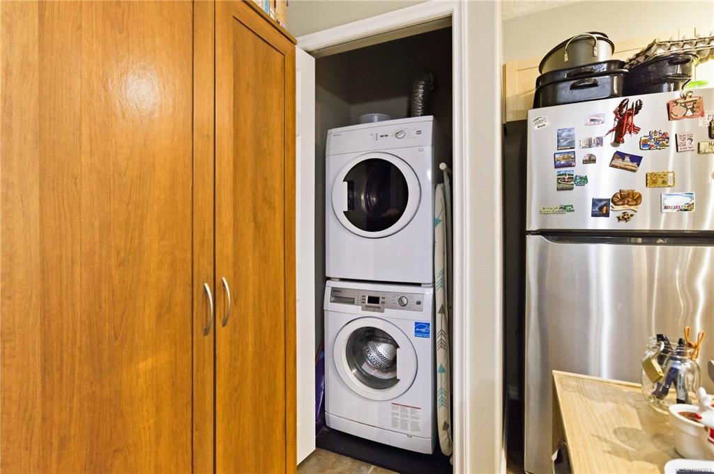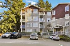 Excellent 1 bed 1 bath condo that has been well taken care of and is located walking distance to all amenities including; new University, Restaurants, Shopping, Grocery, St Anthonys Clinic, Walking Trails and more! Strata is in process of upgrading to key fob system and surveillance cameras! Enter inside to find an open concept layout with a center kitchen island, open kitchen space, spacious area for your dining room and a large living room with electric fireplace for cozy heat! Bedroom is spacious and will accommodate a king-sized bed, main bathroom is a 4 piece with a nice bathtub and you have a laundry space as well! Do not forget about your Balcony located on the quiet side of the building and facing a space the City of Langford will be turning into a very large Municipal Park area called Woodlands Park (Buyer to satisfy themselves with what that space will turn into). Unit comes with a STORAGE LOCKER as well as one PARKING STALL! View today!