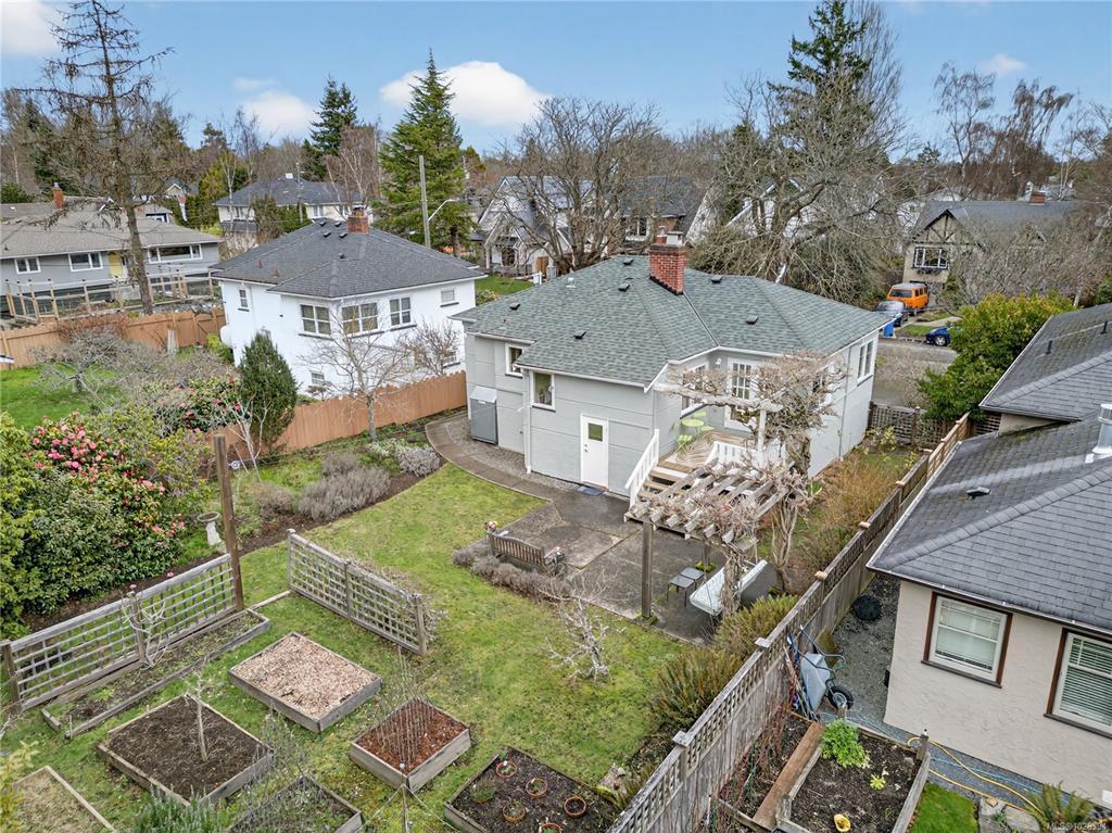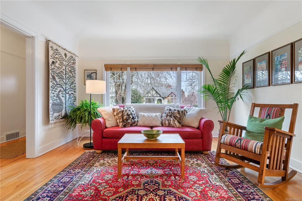 Absolutely charming 1940 character home set on a peaceful street in South Oak Bay. This residence showcases all the classic details you’d anticipate from its era, including stunning oak & fir floors spanning the main level & elegant coved ceilings. The kitchen has been fully renovated while preserving timeless appeal. Enjoy a spacious living room with feature fireplace, a formal dining room open to the kitchen &, rare for its time, a delightful family room accessible from both the living & dining spaces. Two nicely appointed bedrooms thoughtfully positioned on either side of a bathroom featuring updated tub & shower. The lower level offers excellent potential awaiting your creative vision for future development. The west-facing backyard includes a BBQ deck, expansive patio with arbor, plenty of space for kids, pets, or gardening enthusiasts. Notable improvements include roof, insulation, windows, electrical, furnace, perimeter drains, & upgraded sewer & water lines. Truly delightful.