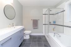 6 bed, 4.5 bath home with a legal 2 bed suite above the garage. Located in a quiet, family-friendly neighborhood close to parks, schools, and everyday amenities. The main level features a bright open-concept kitchen, living, and dining area with direct access to a covered patio and fully fenced yard. Down the hall is convenient main floor laundry, a powder room, and a versatile flex room with its own entrance and adjacent full bathroom, perfect for a guest room, home office, nanny suite, or home-based business. Upstairs offers a spacious primary bedroom with walk-in closet and private ensuite, along with two additional bedrooms and a full bathroom. Legal 2 bedroom, 1 bathroom suite above the garage features large windows, excellent natural light, and its own distinct living space. The garage configuration allows flexibility for tenant parking or full use as a triple garage for the main home. Built in 2011 and thoughtfully updated with a new furnace and heat pump in 2024.