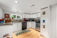 Discover a thoughtfully updated home offering exceptional flexibility, privacy, and income potential—set in a peaceful, family-oriented neighbourhood close to parks, schools, and everyday amenities. The upper level features two comfortable bedrooms, an updated kitchen and bathroom, and inviting living and dining spaces that flow onto a sunny deck—perfect for hosting or enjoying quiet mornings. Downstairs, a bright one-bedroom suite with its own entrance and private fenced garden creates an ideal setup for extended family or guests. This versatile layout also allows for an easy return to a full single-family home, making it well suited for multi-generational living. Significant improvements include perimeter drains, updated windows, a new ducted heat pump, hot water tank, and beautifully landscaped, fully fenced grounds designed for year-round enjoyment. Move-in ready and rich with opportunity—this is a property that truly delivers on lifestyle, flexibility, and long-term value.