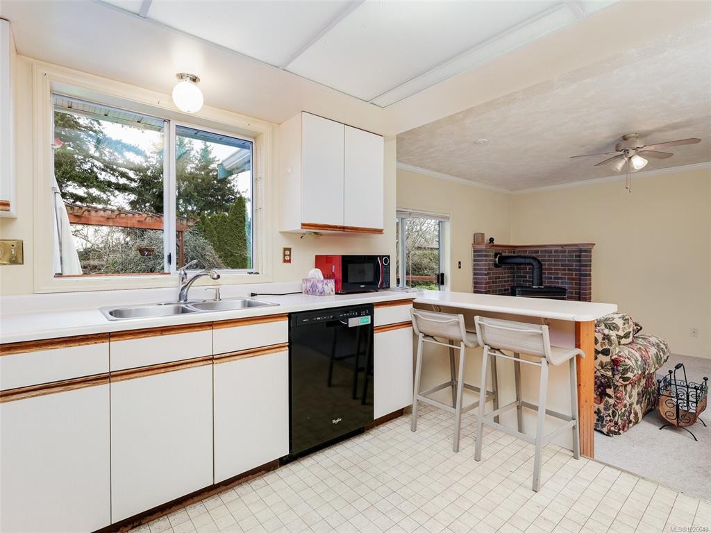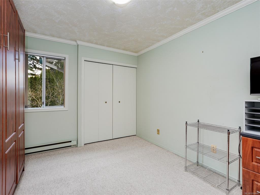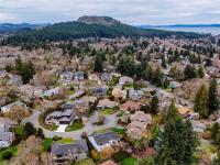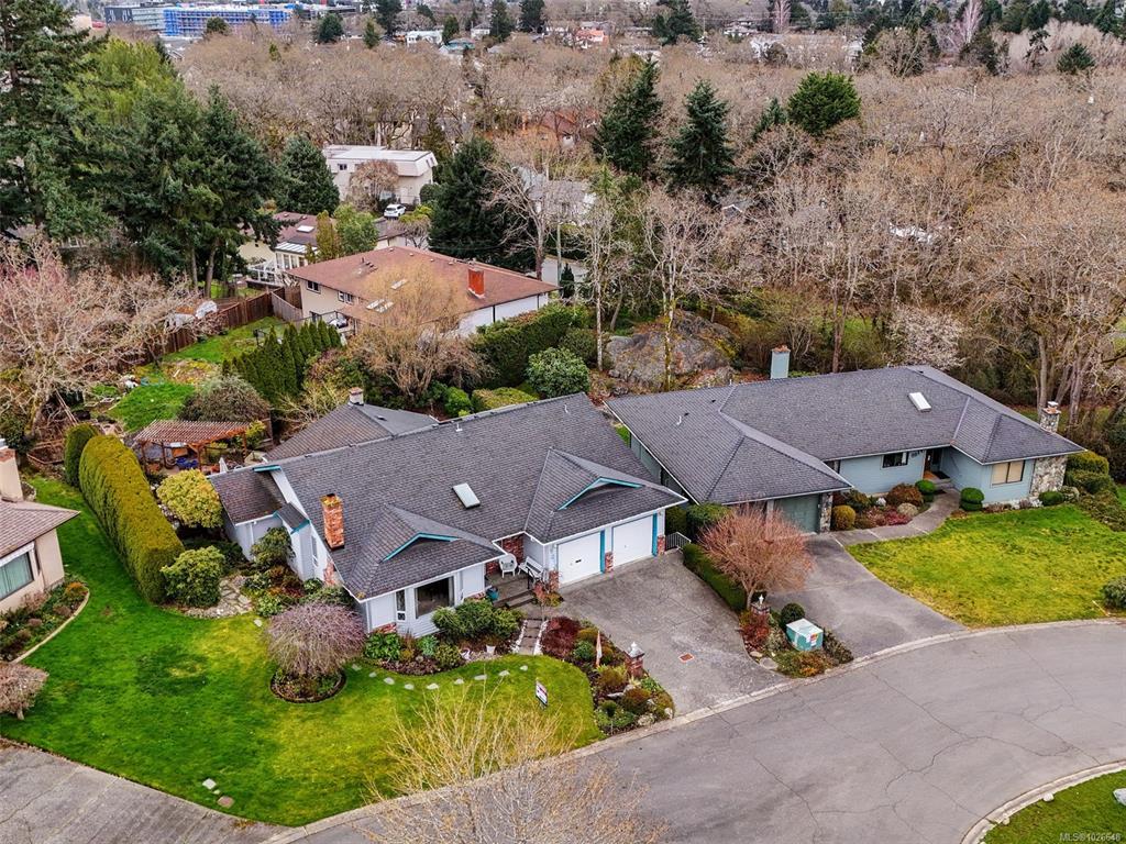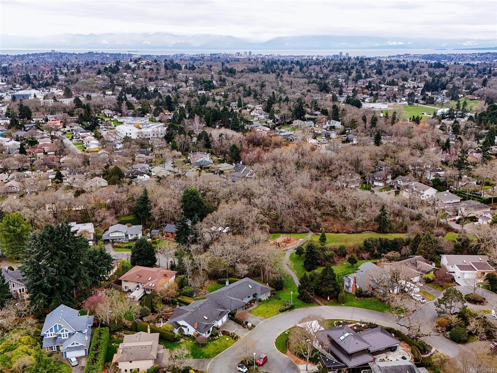 Built in 1986 on a 7589 sqft south facing rear yard lot located on a quiet cul-de-sac on the southern slope of Mt. Douglas. The Hollyridge subdivision is truely a special location that offers home owners a light and bright location with a gently sloping and curved roadway, underghround services and mature trees and land scaping. A near level entry 3 bedroom, 3 bath home thoughtfully designed and built around the natural topography of the lot offering a 2 step front entry and generous rear patio with pond and trellis overlooking the private fully landscaped rear yard. Features including an attached double car garage, primary bedroom and laundry on the main, fireplaces in the living and family rooms, and a full height daylight walk out basement makes this ideal for those looking for secondary accommodation potential and/or a recreation room. Walking distance to PKOLS Mt. Douglas park, the University of Victoria and the local shopping at the Root cellar, University Heights Shopping center