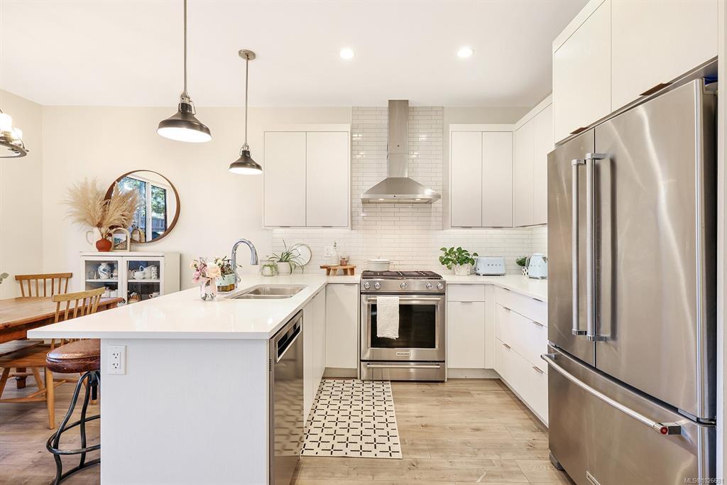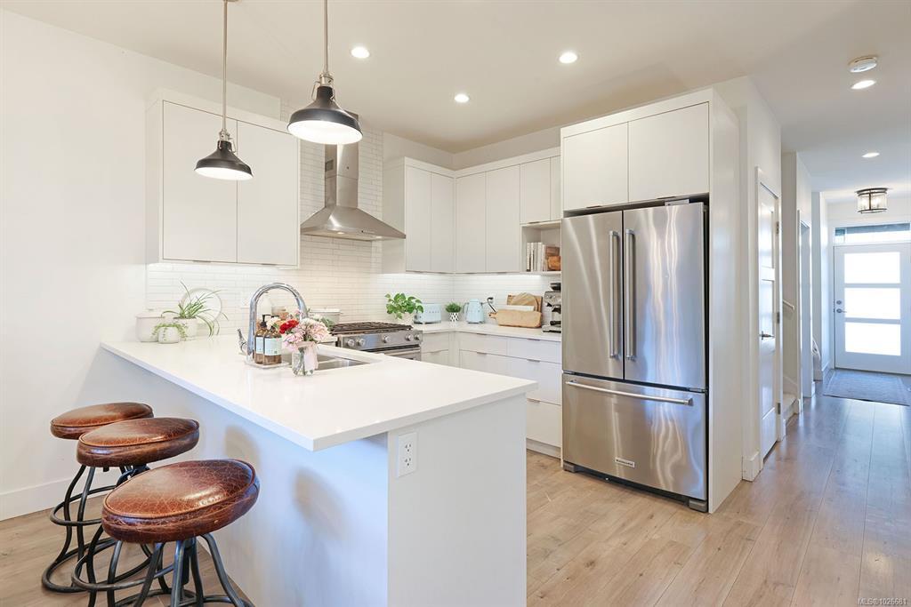 Welcome to the very popular Stoneleigh Station in Cumberland on beautiful Vancouver Island. Built by reputable Monterra Construction with the latest design features and functionality for families and empty-nesters. This spacious floor plan boasts 1570 sq ft with 3 bedrooms, 3 bathrooms, quartz counters with under mount sink in the kitchen, laminated plank flooring on the main level, 9 foot ceilings, forced air gas furnace, 3 ft crawl space, single car garage, fenced rear yard, common area play structure, 36 visitor parking spaces, pets are welcome. This complex was designed with a modern west coast exterior with HardiPlank and Fir post details. Enjoy all that Cumberland has to offer with multi-level walking, hiking, and biking trails, brew pubs, markets and annual festivities. Be part of this vibrant community!