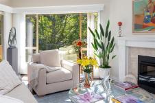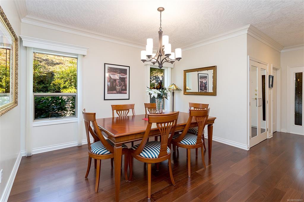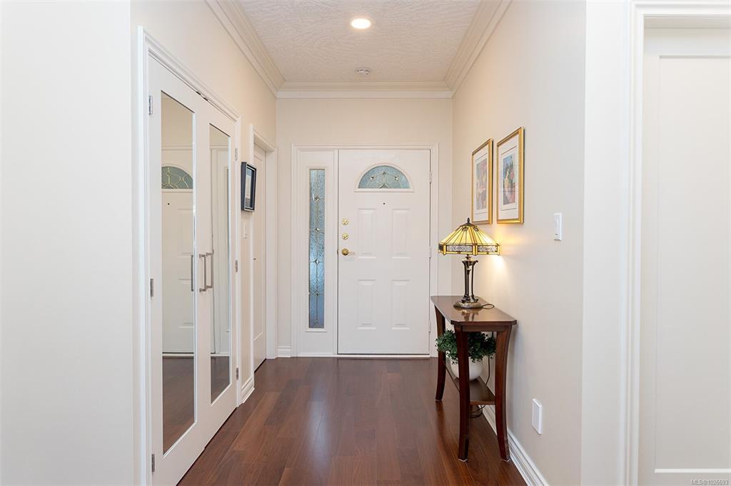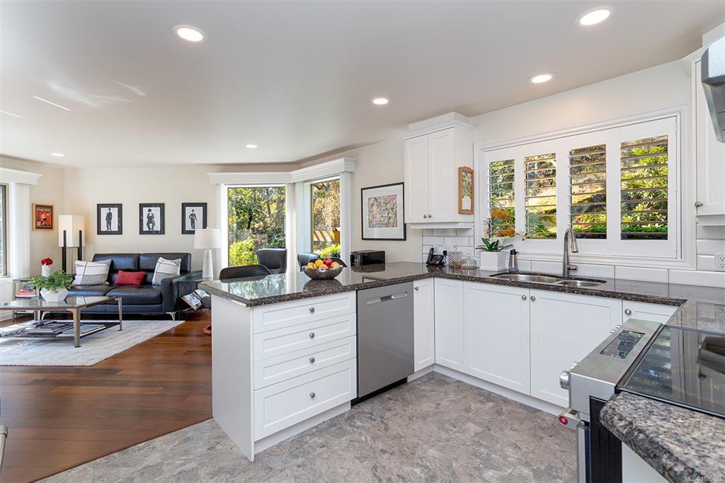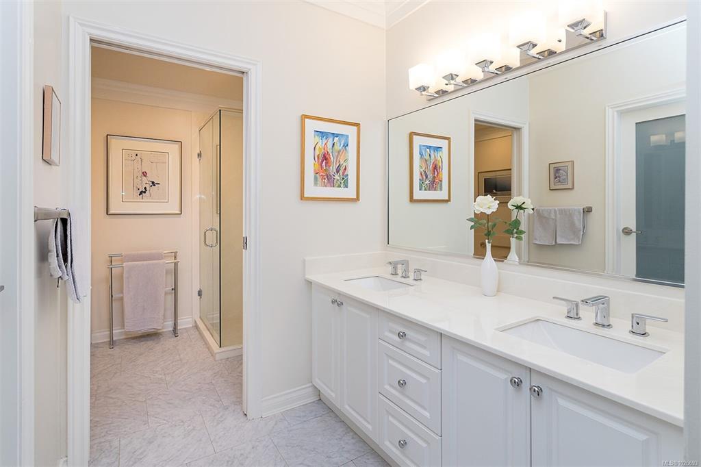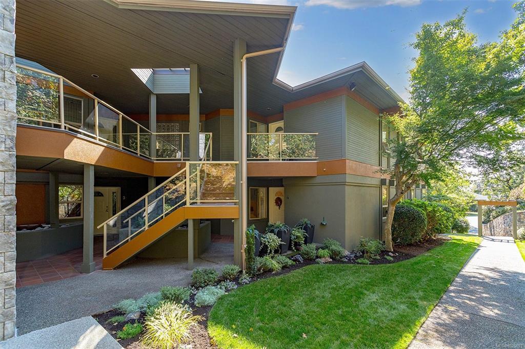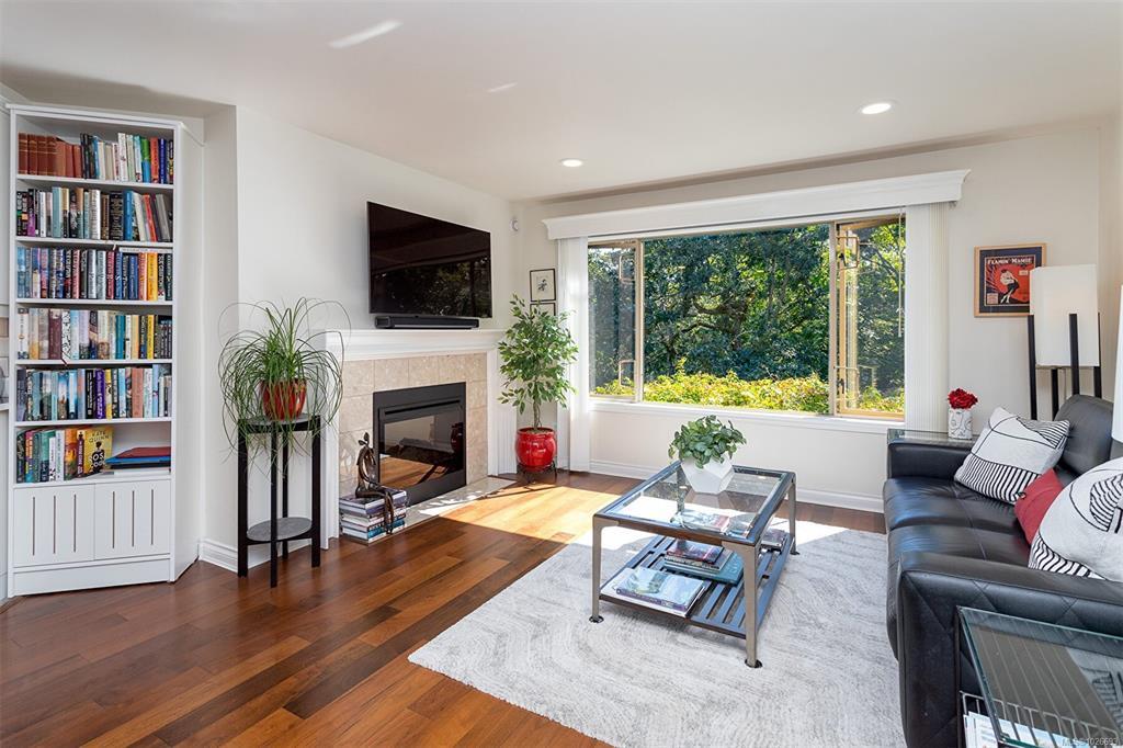 Stunning One Level Corner Unit with 2 Bedrooms and 2 Bathrooms. This Beautifully renovated home feels like a single family home with 1680 Sq ft of luxury and style, 9 ft ceilings, crown mouldings and hardwood flooring. Located in sought after Broadmead you'll enjoy private and quiet Valley and Mountain views. Beautiful open plan custom kitchen adjoining the large and bright corner family room surrounded by windows and featuring a 2 sided fireplace. Enjoy your large entertainment sized Living Room opening onto the 178 sq ft private deck making this a truly great entertaining home. Relax in your luxury master suite with a gorgeous ensuite featuring a large soaker tub and seperate shower with a double vanity in a seperate space and a nice sized walk in closet. This home comes with 2 parking stalls in the garage ready for an electric plug in installation and a seperate entry large storage room. Close to Broadmead Centre, Rithets Bog and endless walking trails. This Home is a Must See!