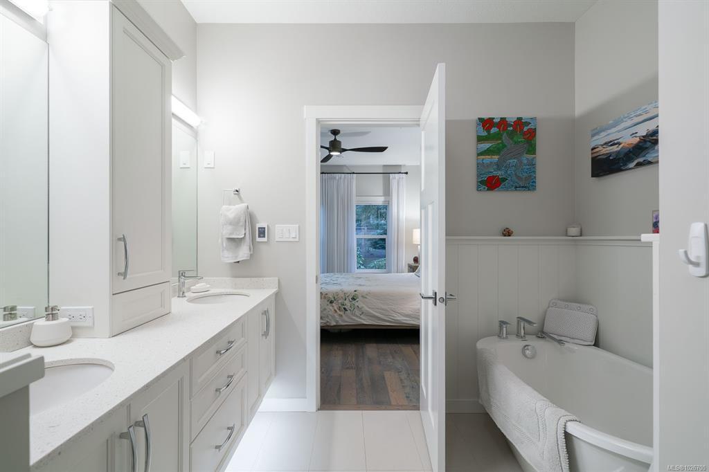 If you’re seeking comfortable single-storey living close to amenities and recreation, this thoughtfully designed Emerald Woods patio home delivers. Offering 2 beds, 2 baths, and 1,375 sqft of open-concept space with overheight ceilings, engineered wood floors, a gas fireplace, and a ductless heat pump for year-round climate control, this home offers a low-maintenance lifestyle without compromising comfort or style. The beautifully appointed kitchen features a pantry and island, while a patio off the living room extends the space outside. The primary suite includes a walk-in closet and a 5-pce spa-like ensuite with a 2nd bed, 4-pce bath, and laundry, completing the layout. Pet-friendly with some restrictions, the new owners will appreciate the double garage and private driveway for extra parking, with nearby walking trails adding to the appeal. The complete package in a sought-after community—don’t miss your chance to call Emerald Woods home. Verify data and measurements if important.
