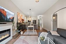 Smart, simple and centrally located. This 2 bedroom, 2 bathroom townhome in Clear Brook Estates offers easy one level living with 10 ft ceilings and a bright open concept layout. The kitchen with island seating flows into the dining and living area with fireplace and access to a private enclosed patio, ideal for morning coffee or relaxed evenings. The primary bedroom features a walk in closet and 4 piece ensuite. A second bedroom and full bath provide flexibility for guests or a home office. Single garage plus two additional parking spaces. Pet friendly strata and a low strata fee add to the appeal. Tucked just off Grant Road, close to shops, schools, parks and transit. A great fit for first time buyers, downsizers or anyone seeking low maintenance living.