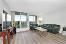 Welcome to Unit 1101 at Sea West Quay. This stunning 11th-floor corner suite offers panoramic views and unforgettable sunsets with both east and west exposures. Just steps to the ocean and minutes to downtown, this bright 2-bedroom home blends scenic beauty with urban convenience. Take in sweeping views of the Sooke Hills from your private balcony. Recently updated kitchen and flooring- featuring contemporary lacquered soft-close kitchen cabinetry with quartz countertops, a beverage bar with added storage, and easy-care vinyl flooring throughout. The primary bedroom includes a generous walk-through closet, and large windows fill the space with natural light. Located across from the Songhees Walkway, enjoy waterfront strolls to Victoria’s Inner Harbour. Amenities include two gyms, billiards room, communal lounge/boardroom, workshop, car wash, underground parking, EV Charger and storage. A rare opportunity to own a view-filled corner unit in an unbeatable location.