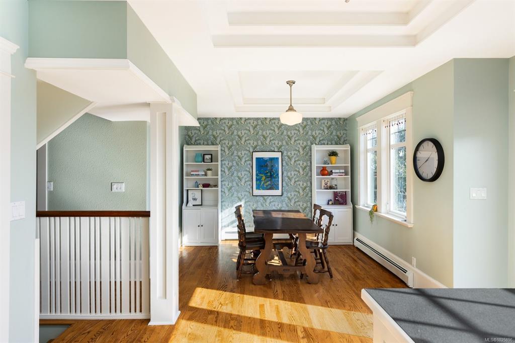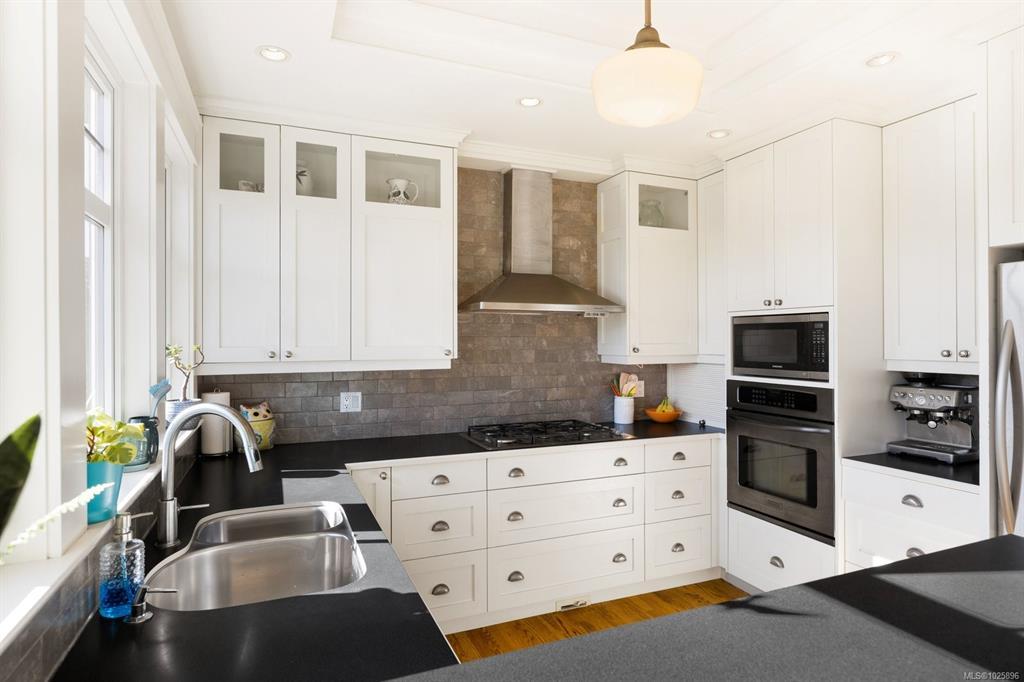 Modern comfort meets timeless character within this home. Substantially renovated in 2007 by Zebra Design, this beautifully updated 5 bed/3 bath home blends classic heritage architecture with the amenities today’s sophisticated buyer expects. Features include lead glass built-ins, 2 fireplaces, hardwood floors, coffered ceilings, wainscotting, built-in window seats and skylights. Located in one of South Oak Bay’s most desirable neighbourhoods, it offers a warm, enticing atmosphere and a classic traditional floor plan with a finished walk-out 1 bed/1 bath basement suite—ideal for family living or guests. The private, quiet south facing backyard features a generous sized deck off the kitchen and additional deck with pergola, perfect for entertaining, as well as mature gardens, and a separate studio with lane access. A rare opportunity to own a thoughtfully updated character home in a premier location.