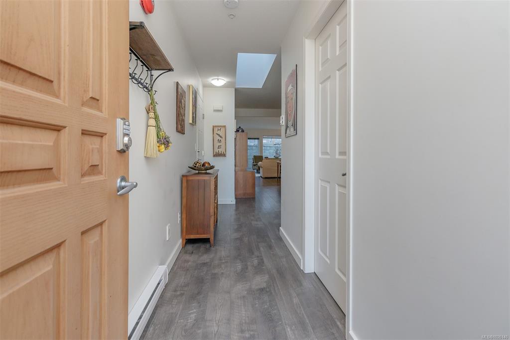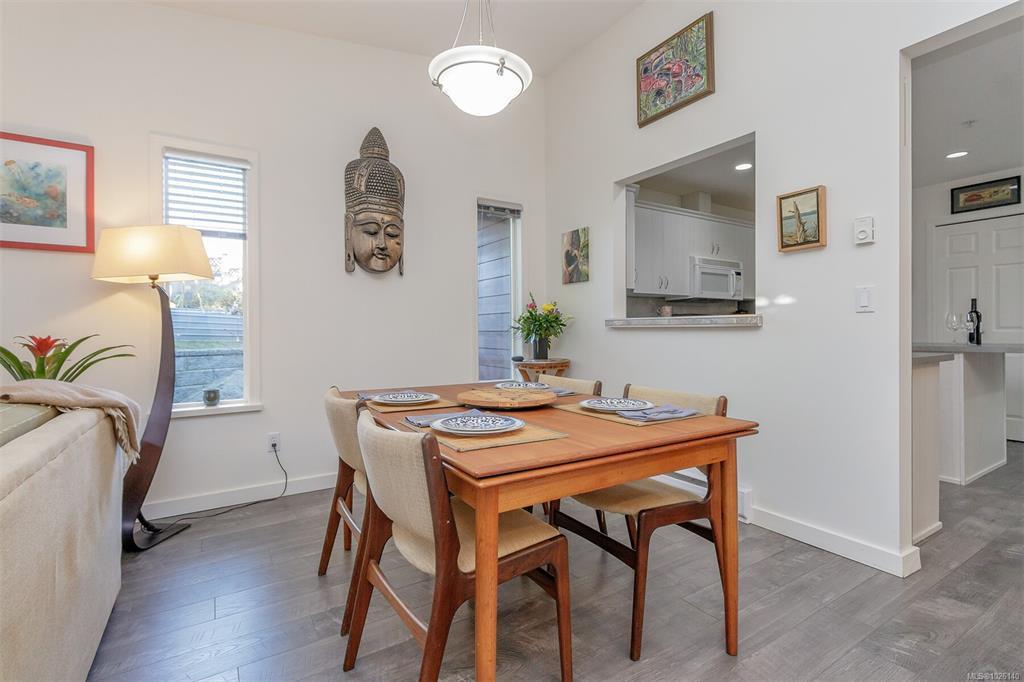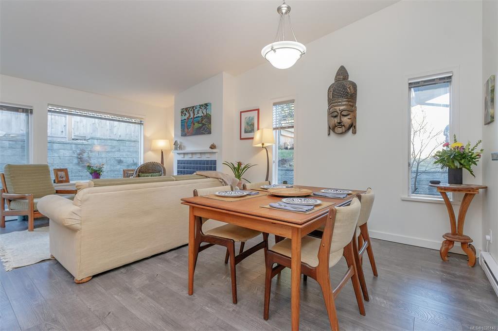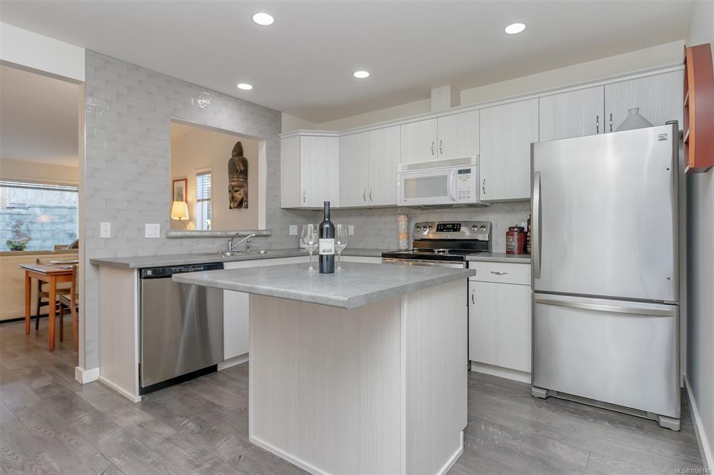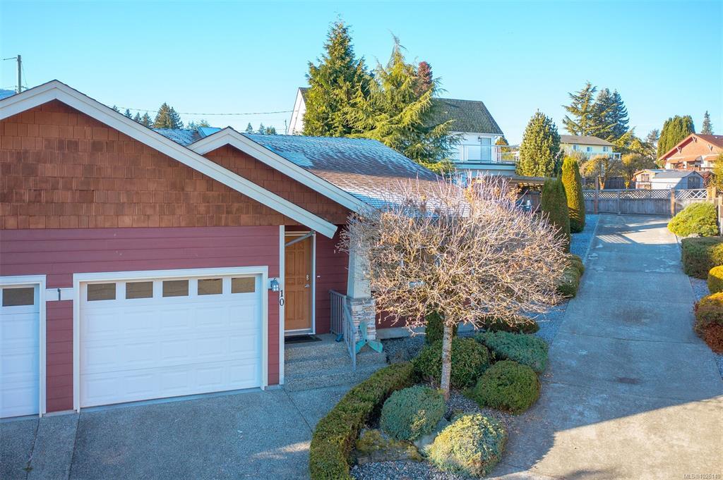 Welcome to popular Belwood Village in the heart of Ladysmith. This beautifully maintained 2 bedroom, 2 bath patio home is privately situated at the end of the complex, offering a large fenced yard for added space for gardening and privacy. Bright and inviting , the open - concept design features three skylights , a vaulted living room ceiling, a cozy thermostat-controlled natural gas fireplace. The upgrades include, the Scottish oak laminate flooring, elegant Italian subway tile back splash in the kitchen. Enjoy the pass thru from the kitchen to dining room for easy serving. Low maintenance , south facing rear patio for your privacy and gardening. Sit under the gazebo and let the time slip away. Pet friendly (with approval) from strata. RV storage available. New roof. Within minutes to downtown Ladysmith shops and recreation and the beach.