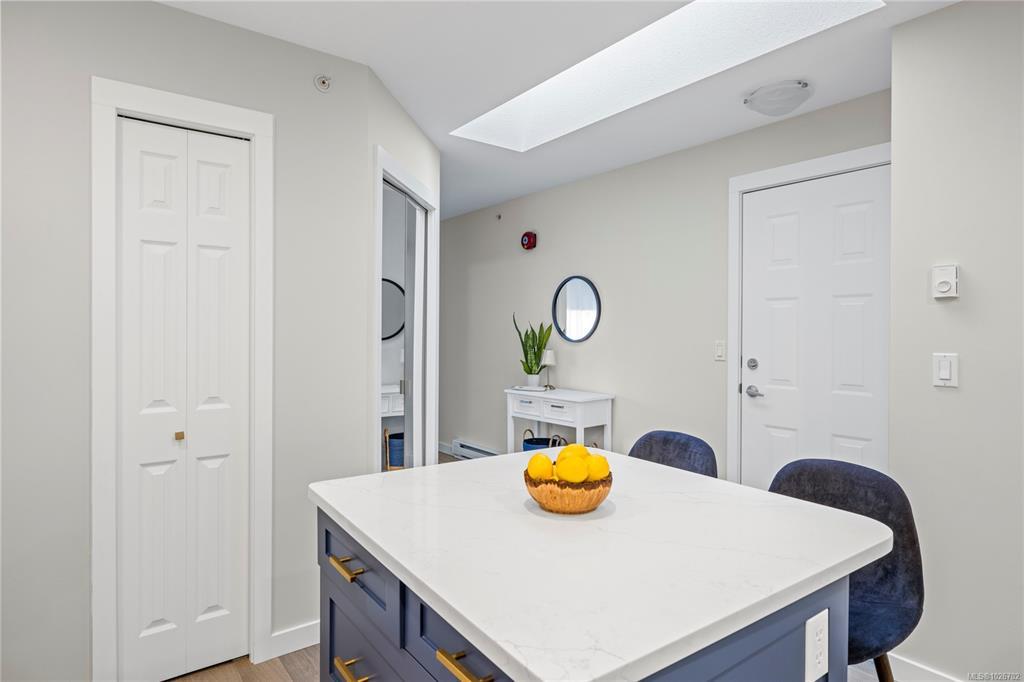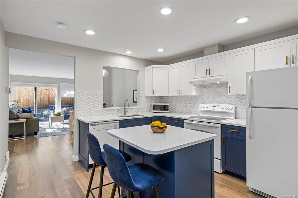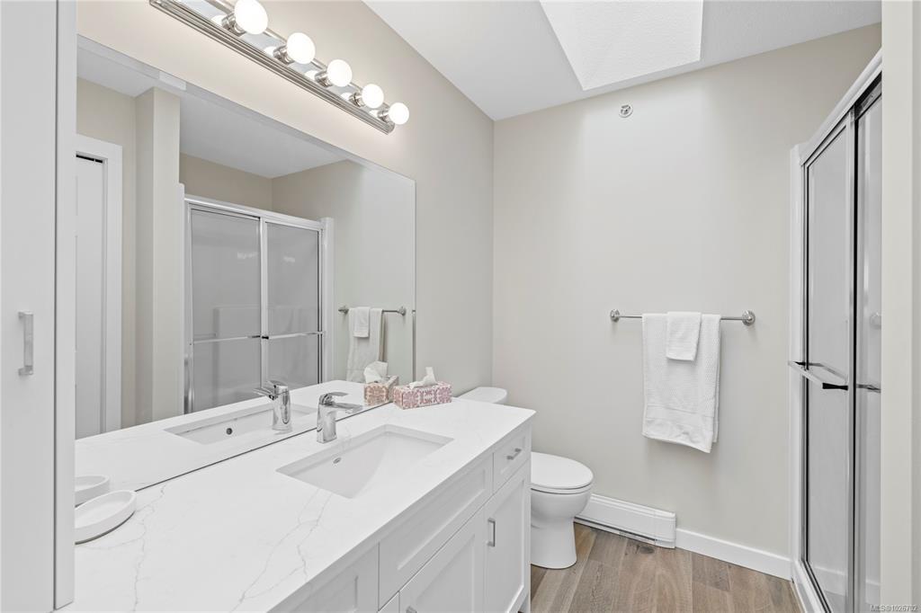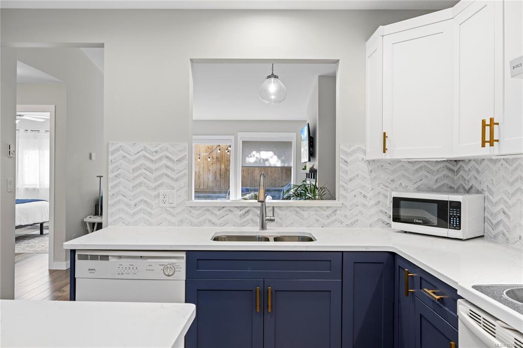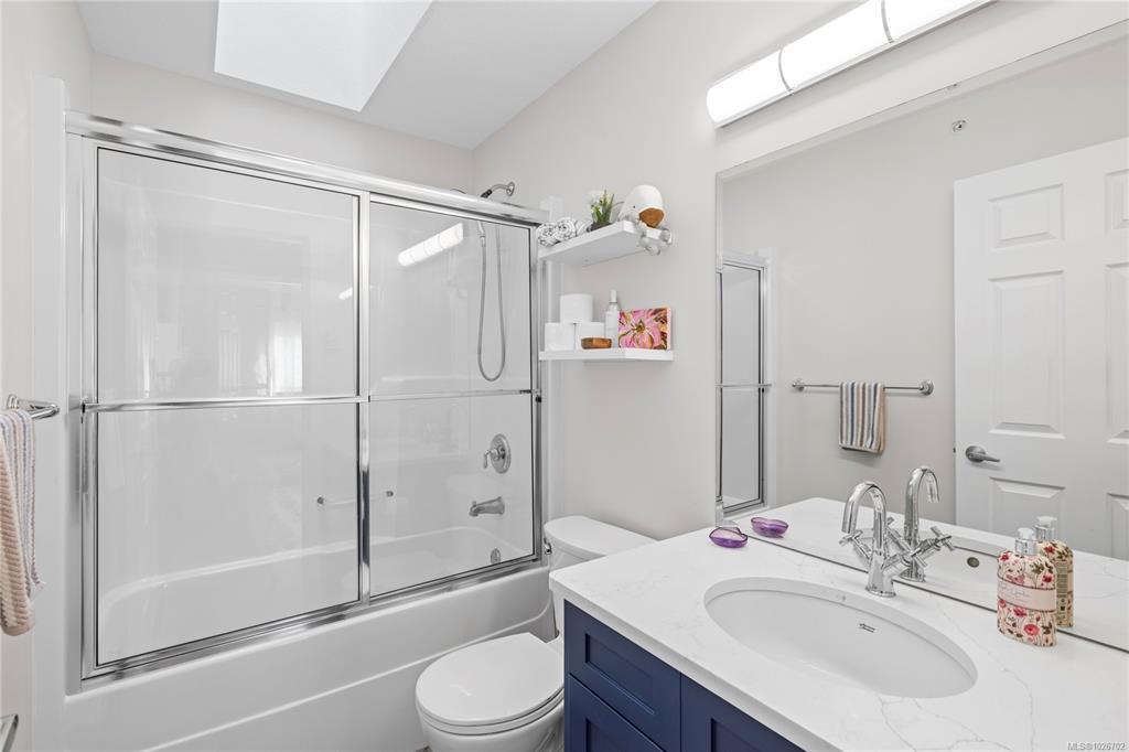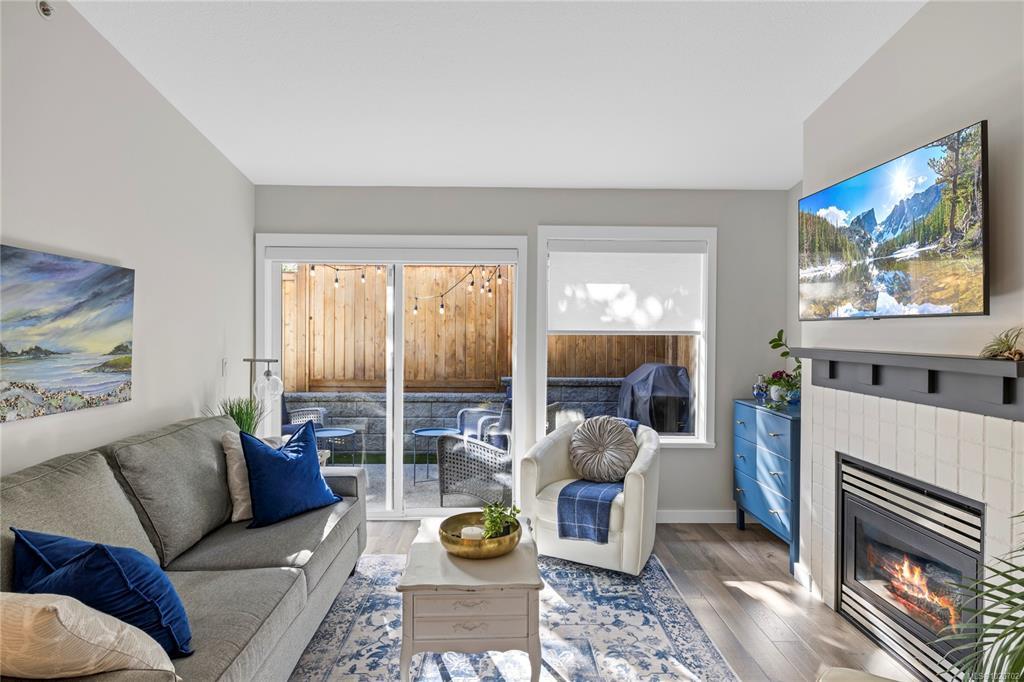 Welcome to 7-332 Belaire Street, a beautifully updated 2-bedroom, 2-bath patio home in the highly sought-after Belwood Estates in Ladysmith. Built in 2001 and meticulously maintained, this home offers tasteful updates throughout. The bright, open layout is enhanced by three skylights that fill the space with natural light, while the spacious living room features a cozy gas fireplace. The modern kitchen shines with quartz countertops, updated cabinetry, and generous prep and storage. The primary suite includes a lovely ensuite and ample closet space, and the second bedroom is ideal for guests or a home office. Step outside to your private patio and enjoy the peace and solitude. Belwood Estates is known for its quiet setting and pride of ownership, with onsite RV parking included in the strata fees. All of this is just minutes from downtown Ladysmith, Coronation Mall, the Rec Centre, walking trails, and Transfer Beach. Measurements are approximate; please verify if important.