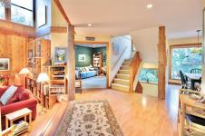 Welcome to this charming character home in the heart of the North Chesterman neighbourhood. This beautifully maintained 3 bedrm residence blends timeless architectural details w/ functional living on a picturesque 0.41 acre lot. A light-filled great room welcomes you into this home, centred around a locally sourced river rock fireplace. The main floor also features kitchen & dining areas, den, full bath & laundry. Upstairs you will find 2 bedrms + 4 piece bath. Further up is a charming attic room complete w/ window seat. The lower level features a 3rd bedrm or flex room, rec room w/ toilet, storage room & workshop. Expansive exterior decks ensure the rainforest is enjoyed from all aspects. Other notable features include a floating seismic foundation, heat pump, sand point well, storage shed, greenhouse, raised beds & hot tub. Completing this exceptional offering is a bright, 1 bedrm cabin w/ loft providing excellent rental potential or flexible space for friends & family.