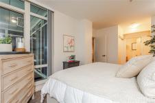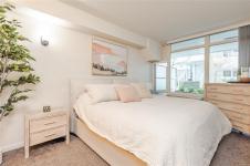 Enjoy year-round comfort with forced-air heat and A/C, along with several functional upgrades including newly installed toilets and a brand-new washer and dryer. The master suite boasts a tiled ensuite with a glass-encased shower, while the second bedroom features a spacious walk-in closet. This pet-friendly retreat welcomes large dogs and includes secure underground parking plus additional storage. Located moments from the vibrant inner harbor, marina, and dining—with gas included in the strata fee—this home offers a lifestyle beyond compare.