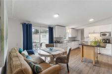 Enjoy a cozy covered front porch, private yard with fruit trees, and a back patio ideal for BBQs. No age restrictions — families, dogs, and rentals welcome.