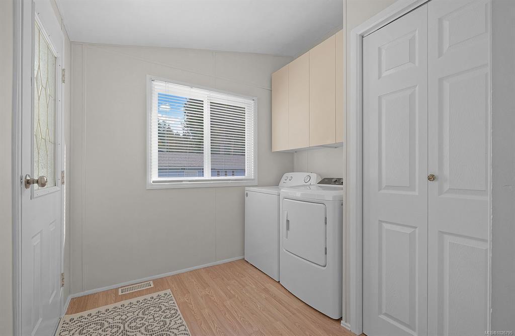 OPPORTUNITY KNOCKS! – Rarely do properties like this come up in Upper Lantzville. This 1120 sq ft, 2 bed and 2 bath de-registered manufactured home with detached 780 sq ft shop, sits on nearly ½ acre of level land. Flexible R1 zoning allows for a multitude of ideas, from updating the home or building the dream house you always wanted in a fantastic location. The current home has been meticulously cared for and comes complete with double pane vinyl windows, concrete foundation, shingle roof, forced air heating, large deck, brand new paint job, and much more. With many windows throughout, the living space is open and bright. The 780 sq ft detached shop has brand new light fixtures, heating, and many work benches. The attached carport is great as well for extra storage or parking. The property backs onto parkland with a creek, further adding to the tranquility and peace apparent by this lot and prime location. Close to shopping, trails, and the ocean. Book your private showing today!
